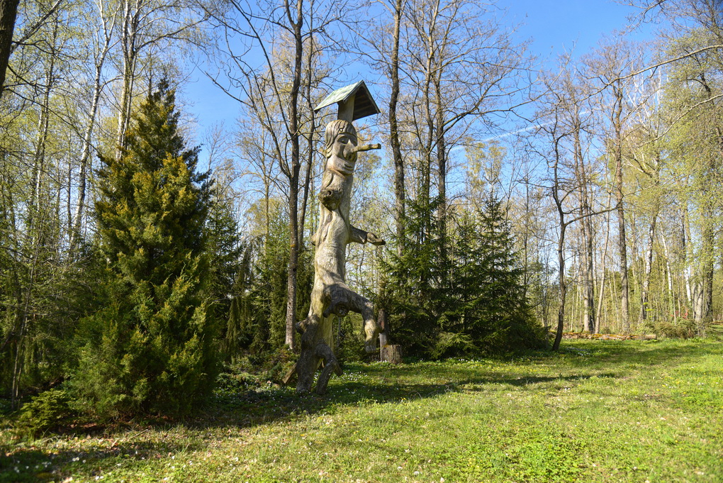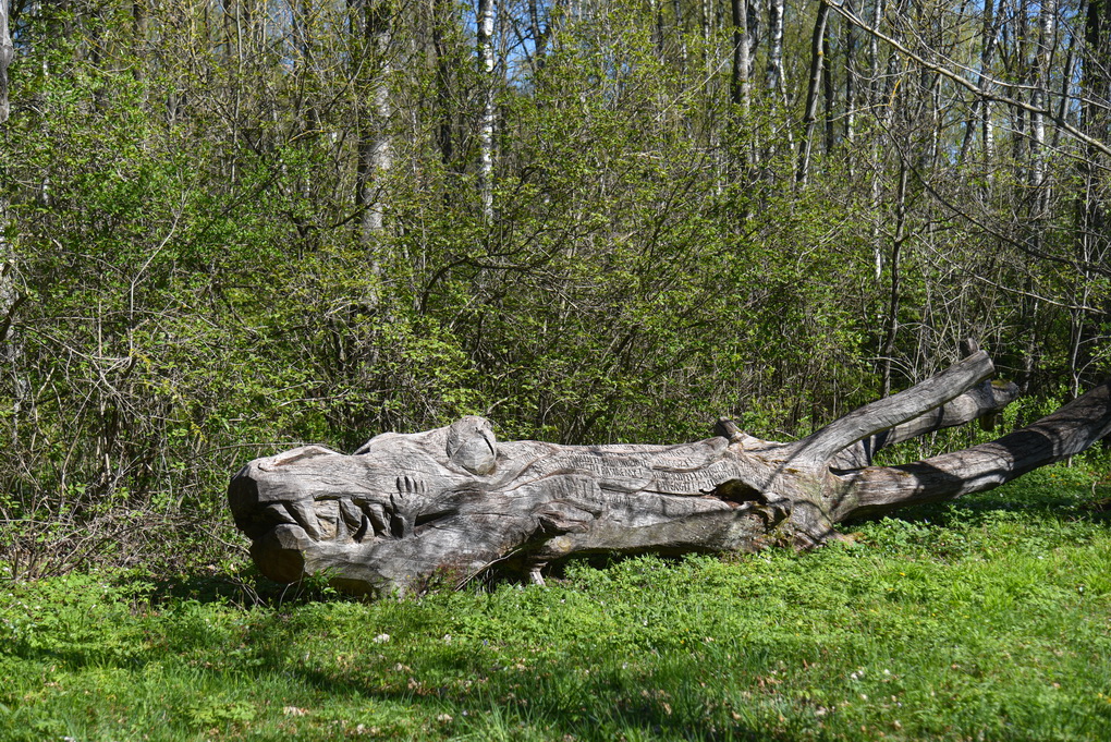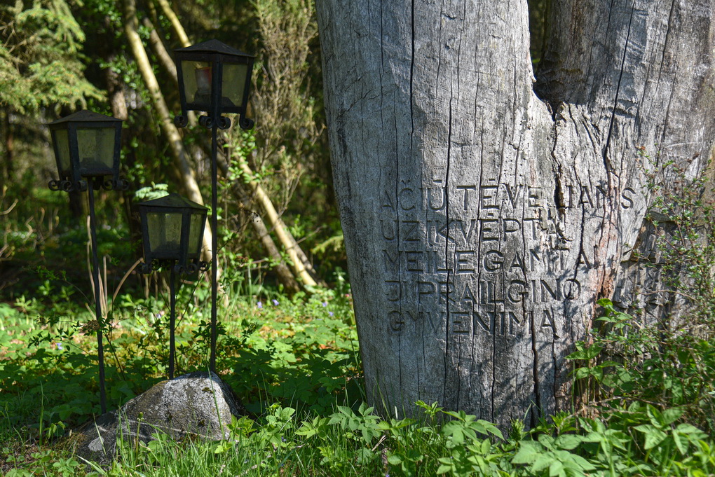 „Sykį kažkokia liga įsimetė į miške augusius ąžuolus ir šie išdžiūvo. Iš jų kamienų sukurtos skulptūros, kurių vienoje esantis dėdės sugalvotas įrašas „Ačiū tėveliams už įkvėptą meilę gamtai, ji prailgino gyvenimą“, man – itin prasmingas“, – pasakoja V. Juknevičius.