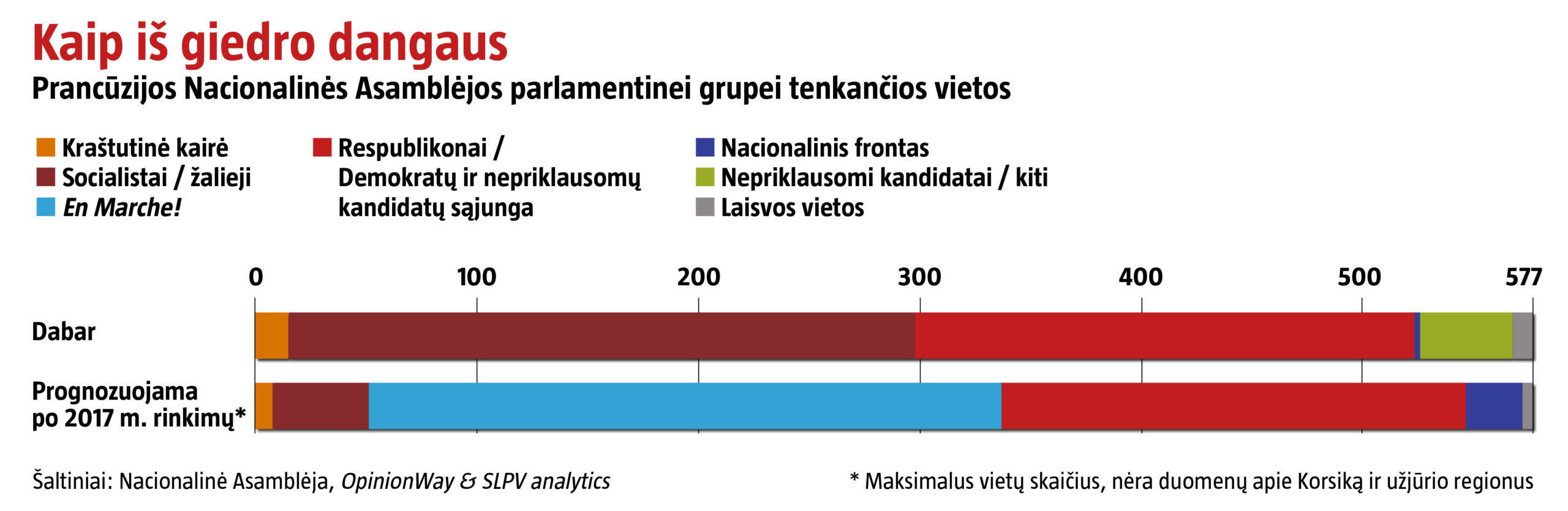 Respublikonams sudėtingiau. Daugelis deputatų mano, kad po penkerių socialisto valdymo metų iš jų pavogta „eilė“ turėti savo prezidentą, ir jie nenusiteikę bendradarbiauti. „E. Macronas išrinktas automatiškai“, – įsižeidusiu balsu tarsteli vienas. Respublikonų parlamentinei kampanijai vadovaujantis buvęs finansų ministras François Baroinas nori suburti stiprią opoziciją, kad pažabotų E. Macrono galią. Kiti ne tokie tikri. Buvęs Europos reikalų ministras Bruno Le Maire’as teigia, kad galėtų palaikyti E. Macrono vadovaujamą daugumą.