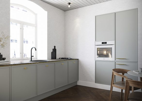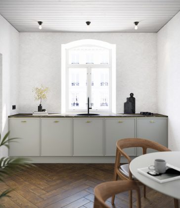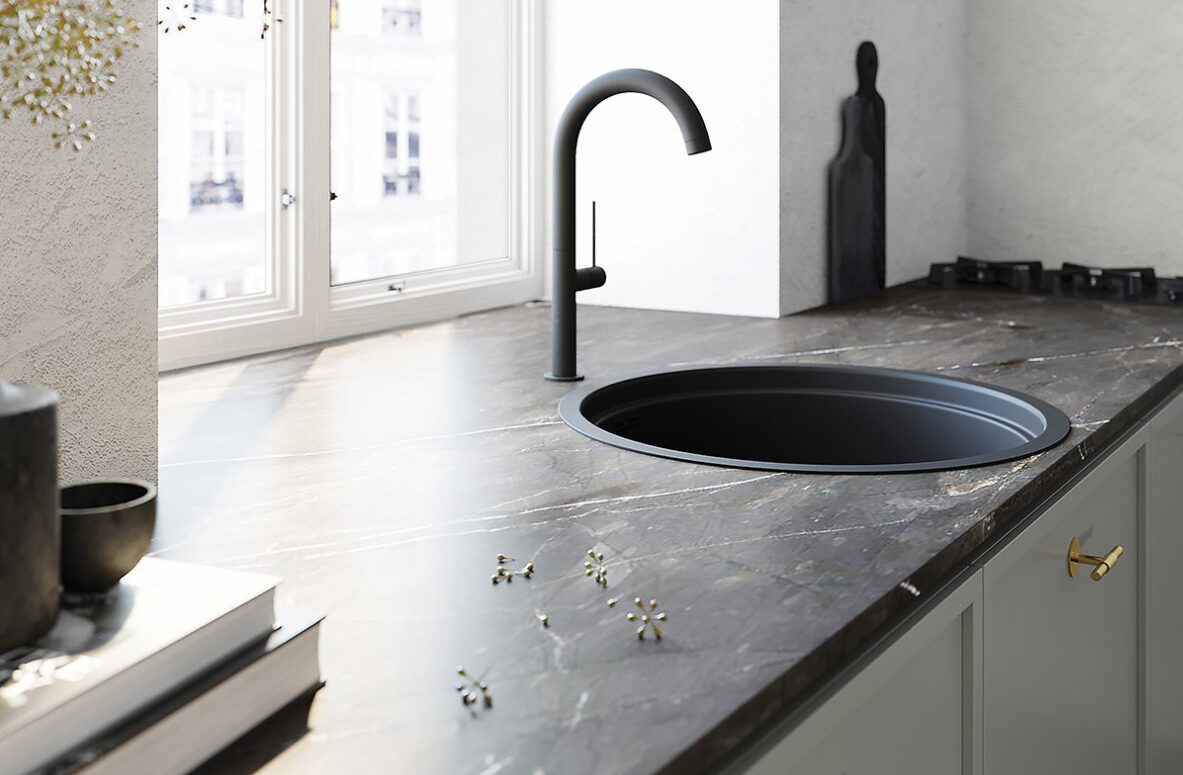 Sostinės senamiestyje buto interjerą projektuojanti specialistė virtuvės stalviršiui numatė vieną iš bendrovės „Trukmė“ pristatomų naujienų – italų kompanijos „FAB Group“ juodo marmuro stalviršį „Black Marble“. „Atsižvelgiant į kontekstą ir objekto lokaciją norėjosi klasikinio varianto, bet interpretuoto moderniai, todėl stalviršis parinktas plonas, matinis“, – savo pasirinkimą motyvuoja S. Vilutė.