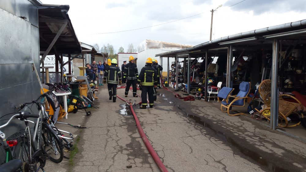 Panevėžio ugniagesių pajėgos penktadienį, apie 12.15 val., skubėjo į miesto pakrašty esantį automobilių ir sendaikčių turgų.