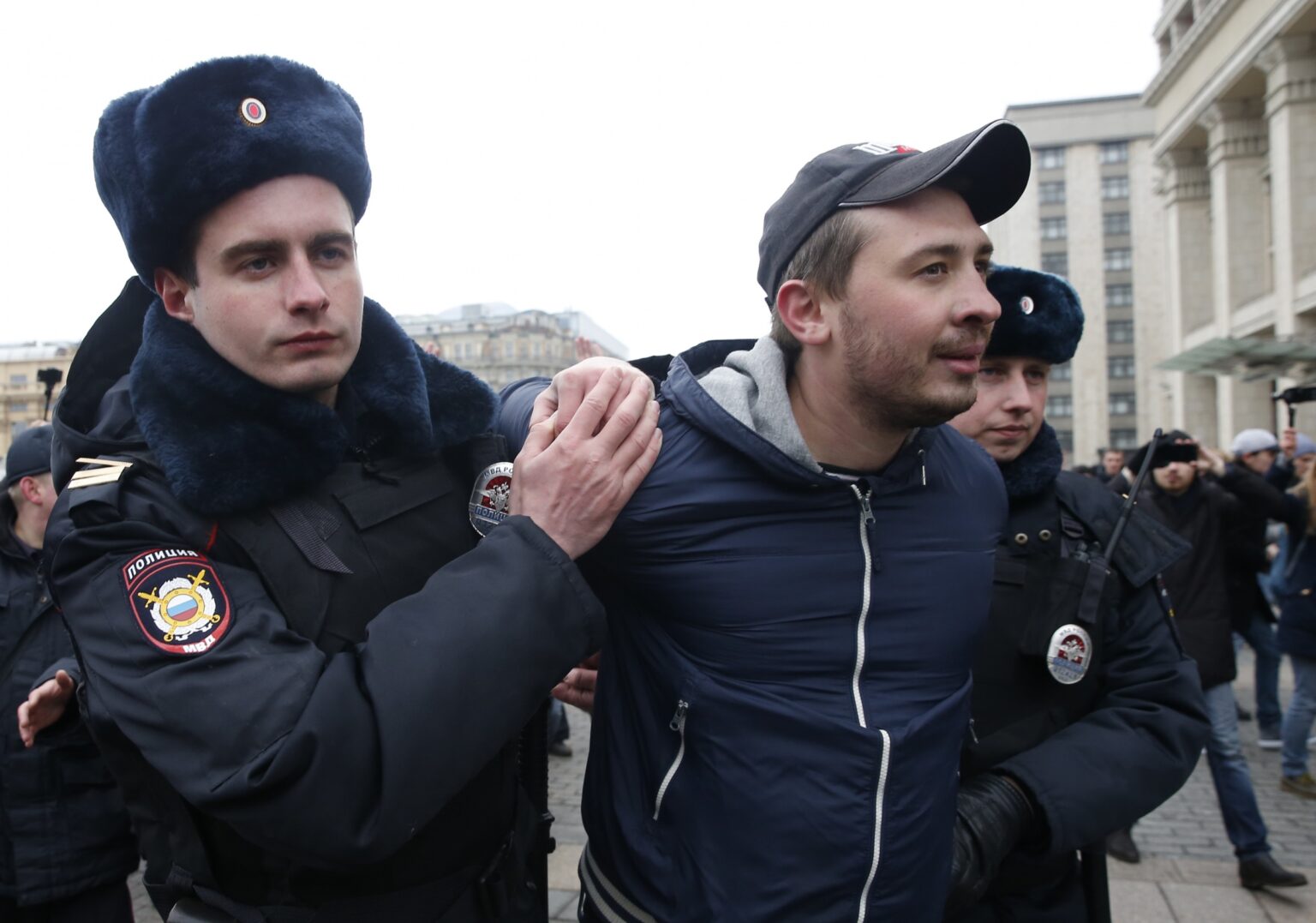 „Naujosios opozicijos“ atstovas Romanas Kovaliovas sakė, kad miesto centre sulaikyta apie 40 žmonių. „Mano duomenimis Triumfo aikštėje sulaikyta apie 40 žmonių“, – sakė jis.