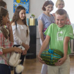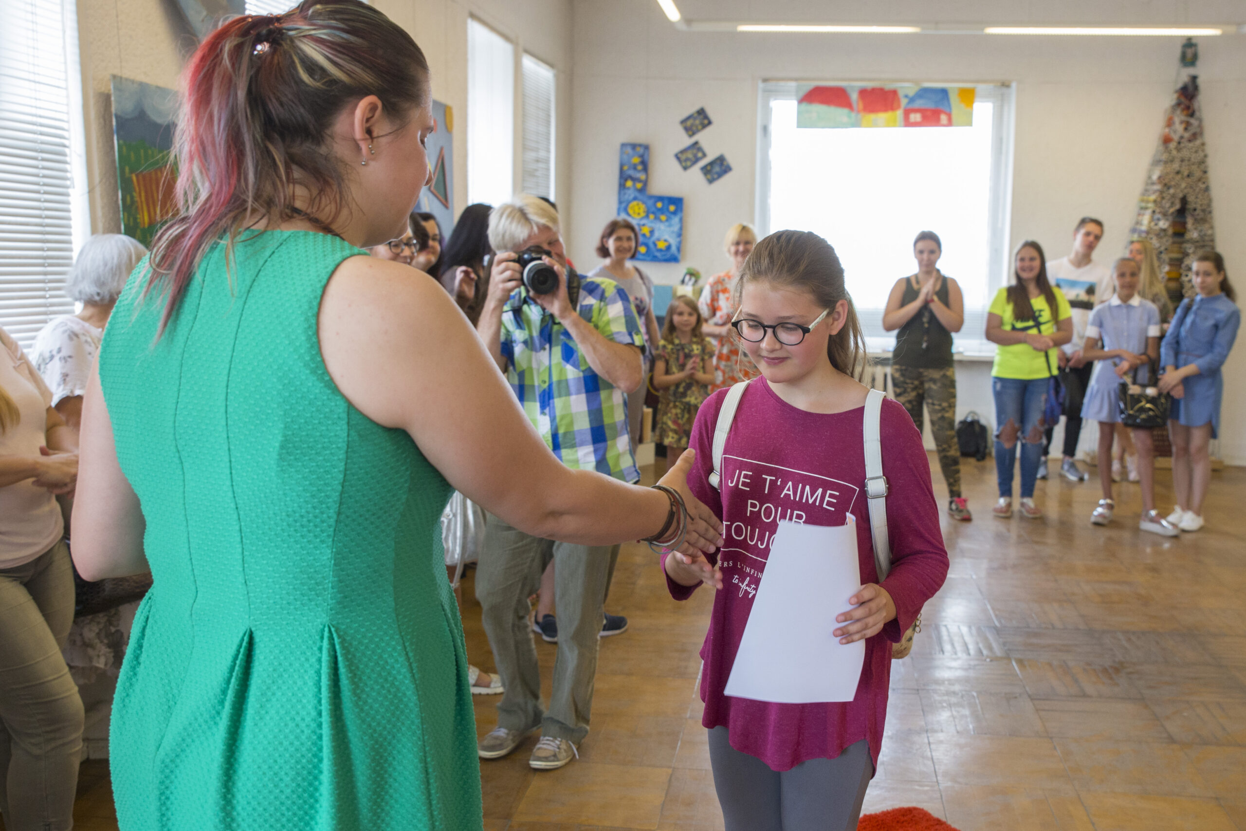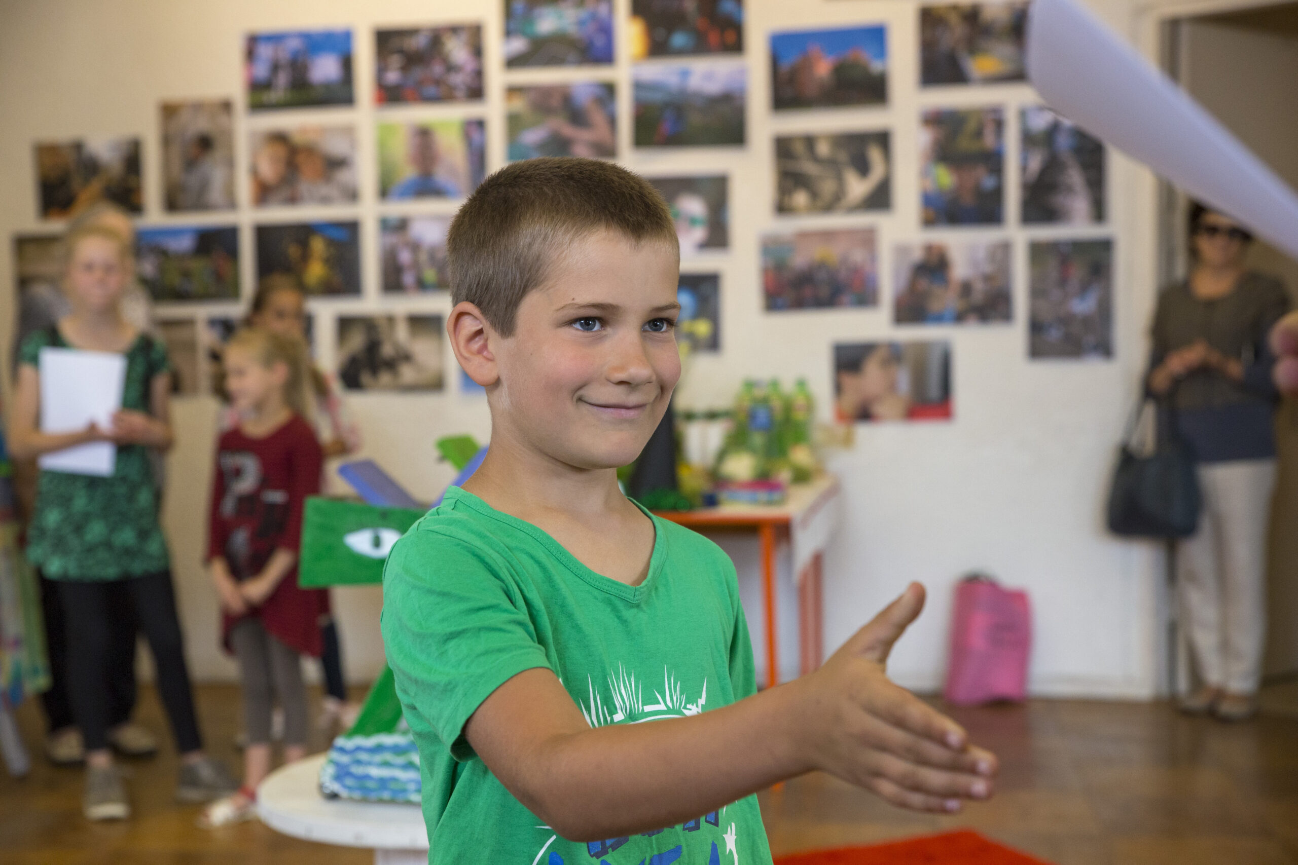 Antradienį stovyklautojai ir jų tėvai rinkosi į baigiamąją stovyklos ceremoniją. Galerijoje „2-as aukštas“ buvo eksponuoti stovykloje mažųjų sukurti darbai, piešiniai, nuotraukos, kurias įamžino vadovas V. Benašas.