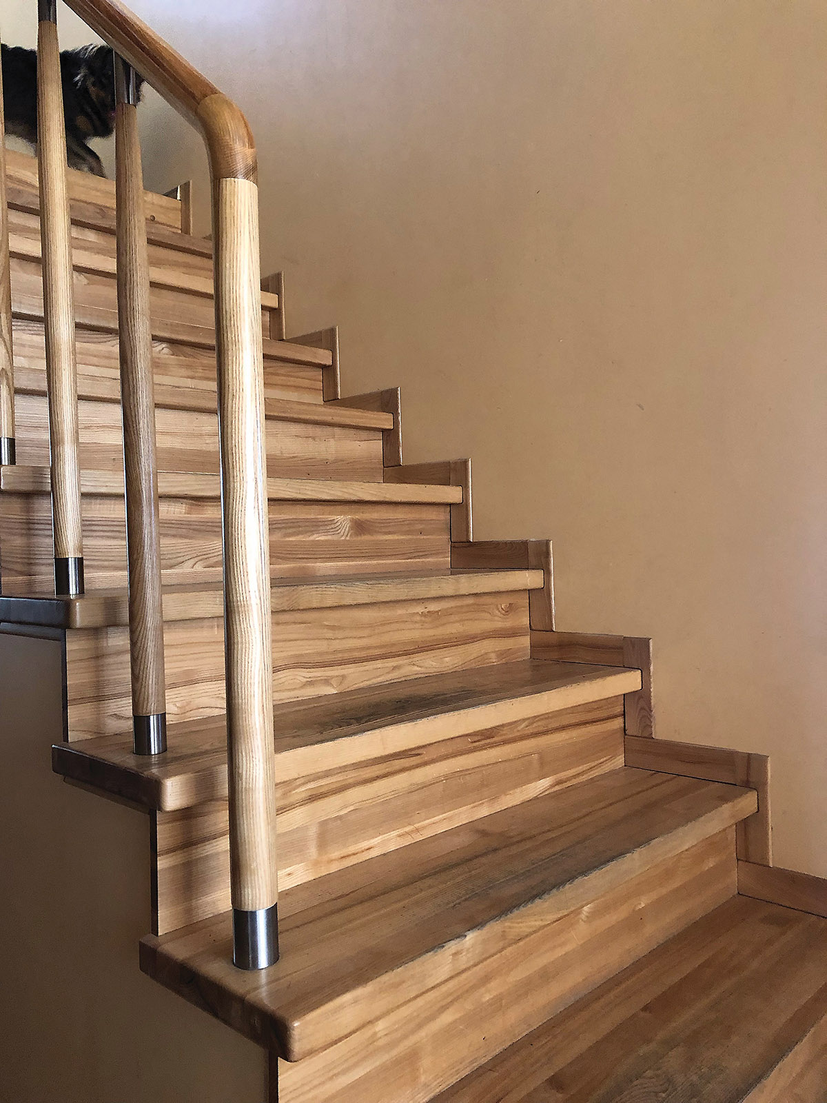 Namo šeimininkai svarstė, ar laiptus bei parketą lakuoti, ar padengti alyva, kuri atrodė natūralesnė. Tačiau gavo patarimą rinktis laką, ypač laiptams. Keli lako sluoksniai sudaro plėvelę ir labiau saugo medieną nuo trinties. Alyvuotą paviršių galbūt paprasčiau atnaujinti, tačiau medinis paviršius labiau susidėvi.