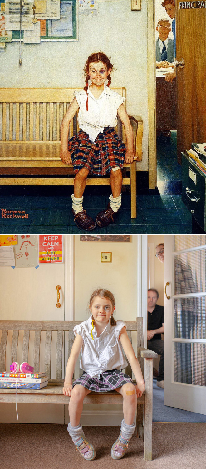 Tik pažiūrėkite, kaip originaliai paveikslo idėją atkartojo karantino kiek slegiami žmonės savo namuose!
