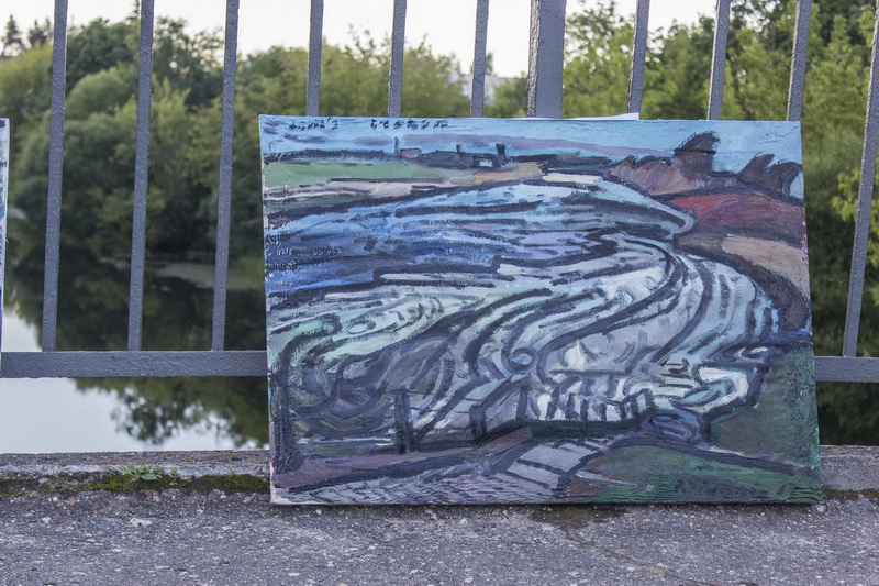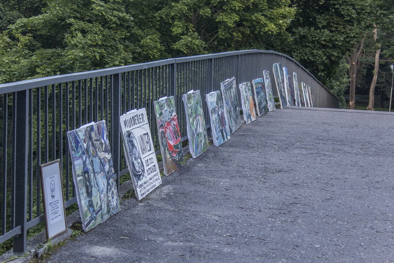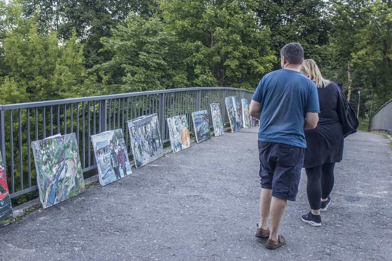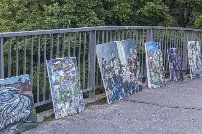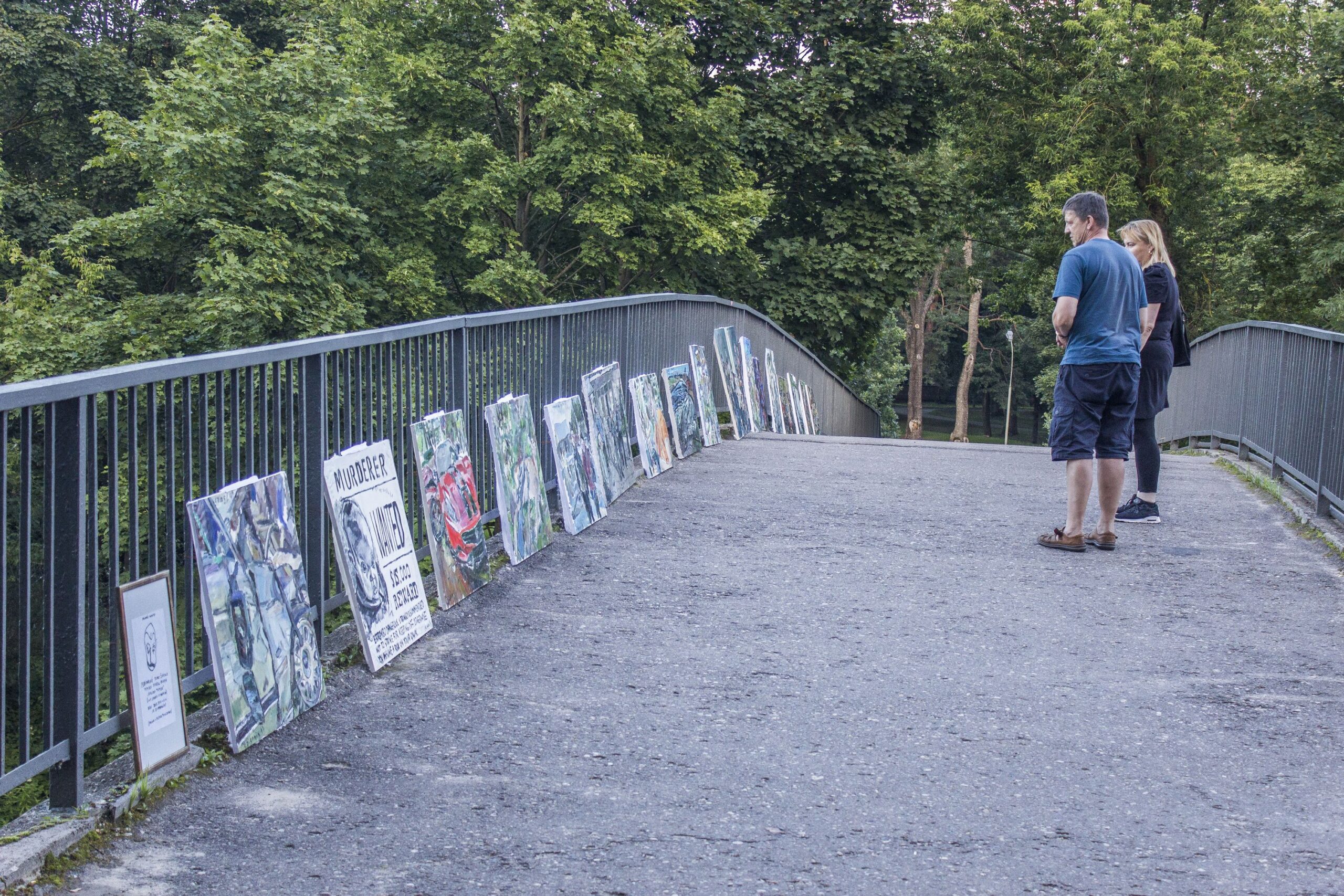 Septyniolika T. Zidonio aliejiniais dažais tapytų paveikslų šeštadienio rytą buvo paprasčiausiai sukabinti ant Skaistakalnio tilto turėklų. Čia toks darbų demonstravimas, pasak autoriaus, turėtų trukti parą. Jei tik praeiviai neišnešios paveikslų.