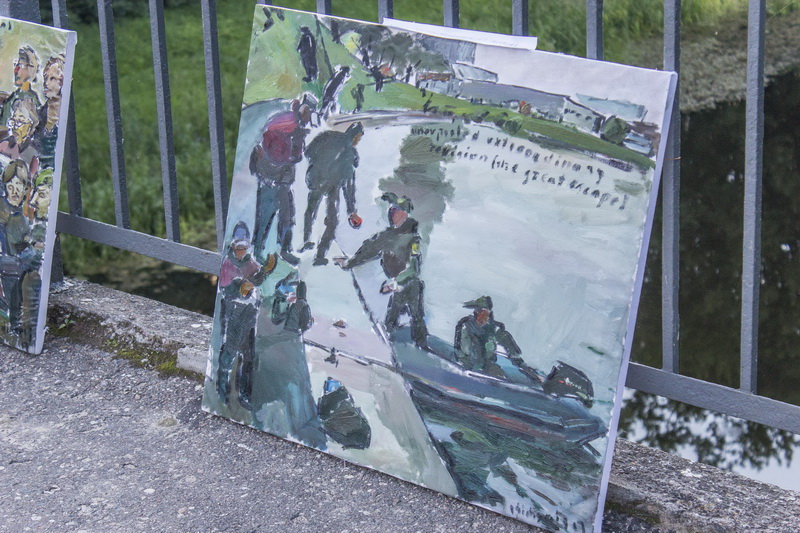 Kaip į jo paveikslų reaguoja praeiviai, autorius nežino. Ankstų rytą jis tematė vangiai prasvirduliavusi girtuoklį. Į paveikslus akį užmetė tik dviračiu pramynęs varguolis.