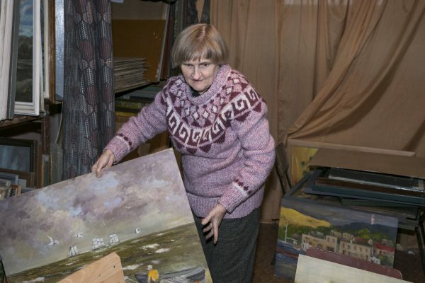 Moteris ironizuoja, kad jeigu iki pavasario neras, kur padėti šimtus vyro tapytų kūrinių, teks sukrauti juos prie konteinerio.
