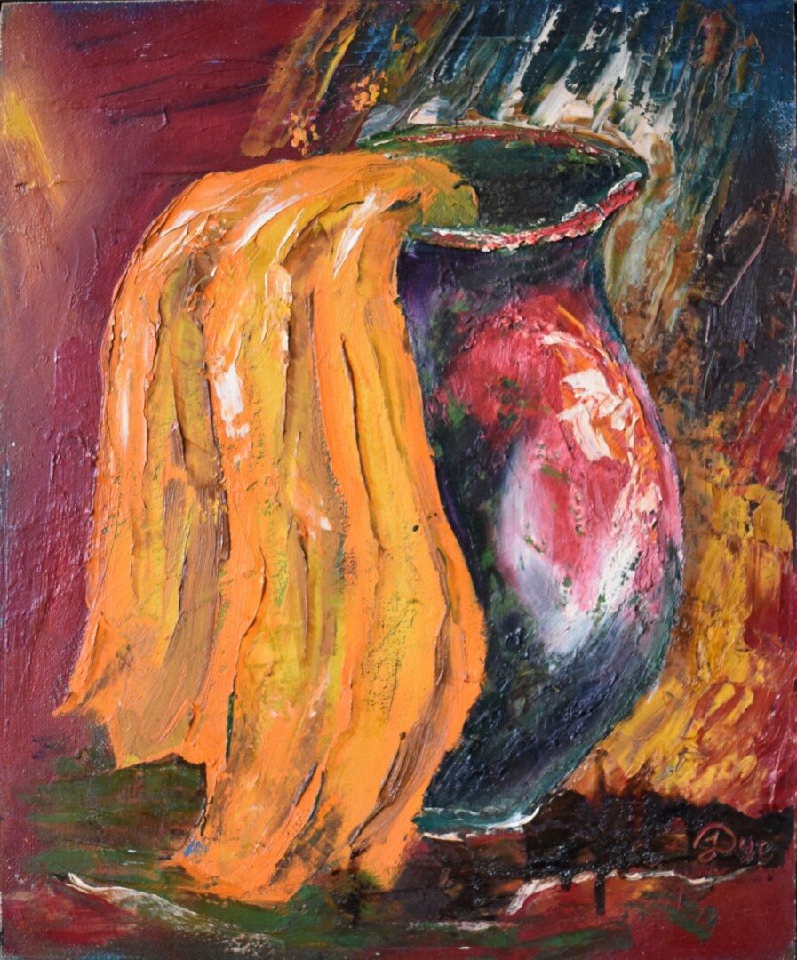 Jis pasakoja tik po tėčio mirties pastebėjęs dar vieną visoje kūryboje naudotą simbolį – indą: ąsočiai, puodynės, amforos. Vienur sudužę, kažkas iš jų išsilieję arba persišviečiantys.