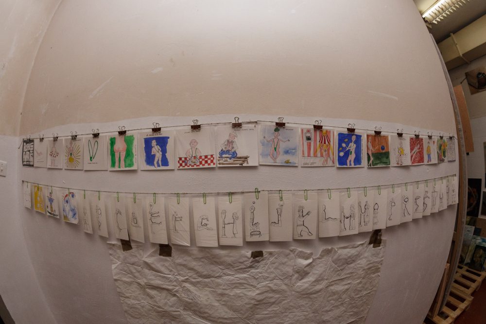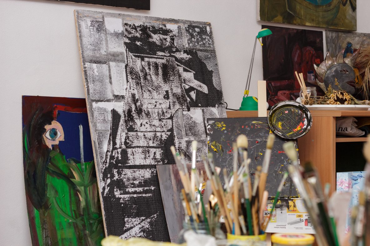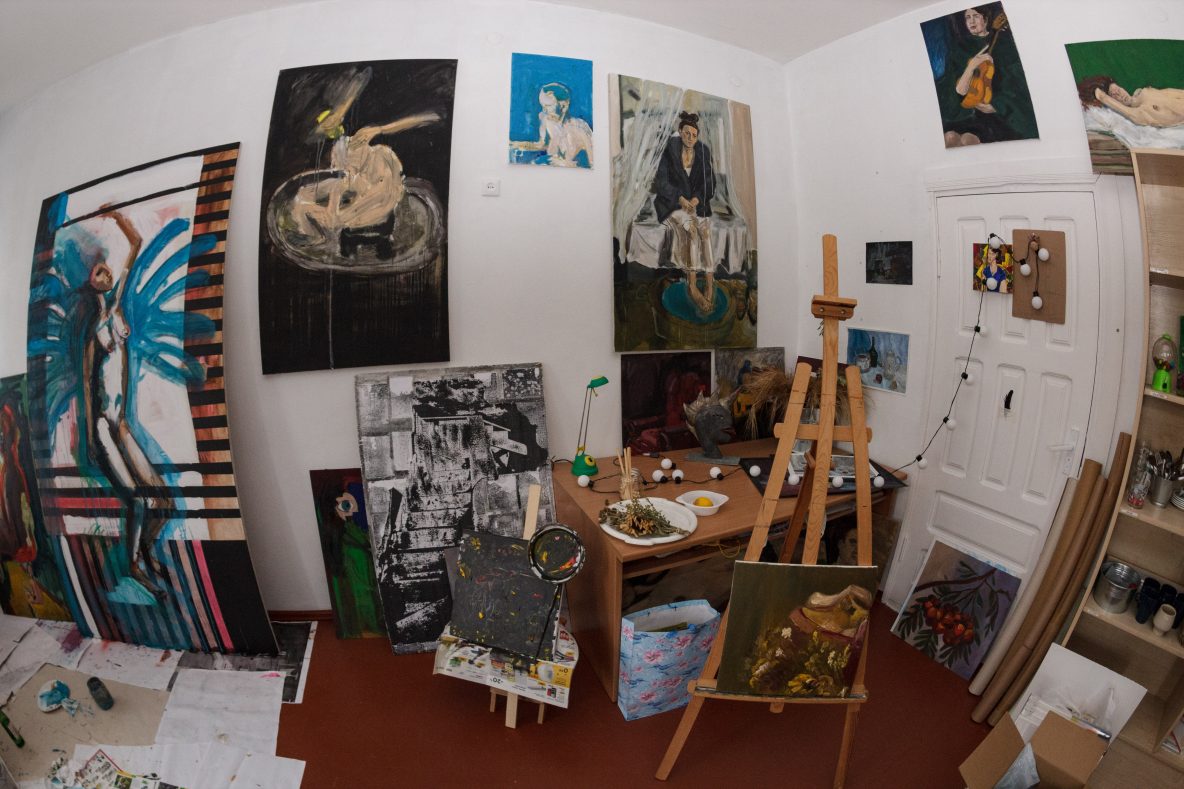Vos įėjus į Faustos studiją, į akį krenta gausybė paveikslų. Didžioji dalis – tapyti jos pačios, keli – mamos, brolio.