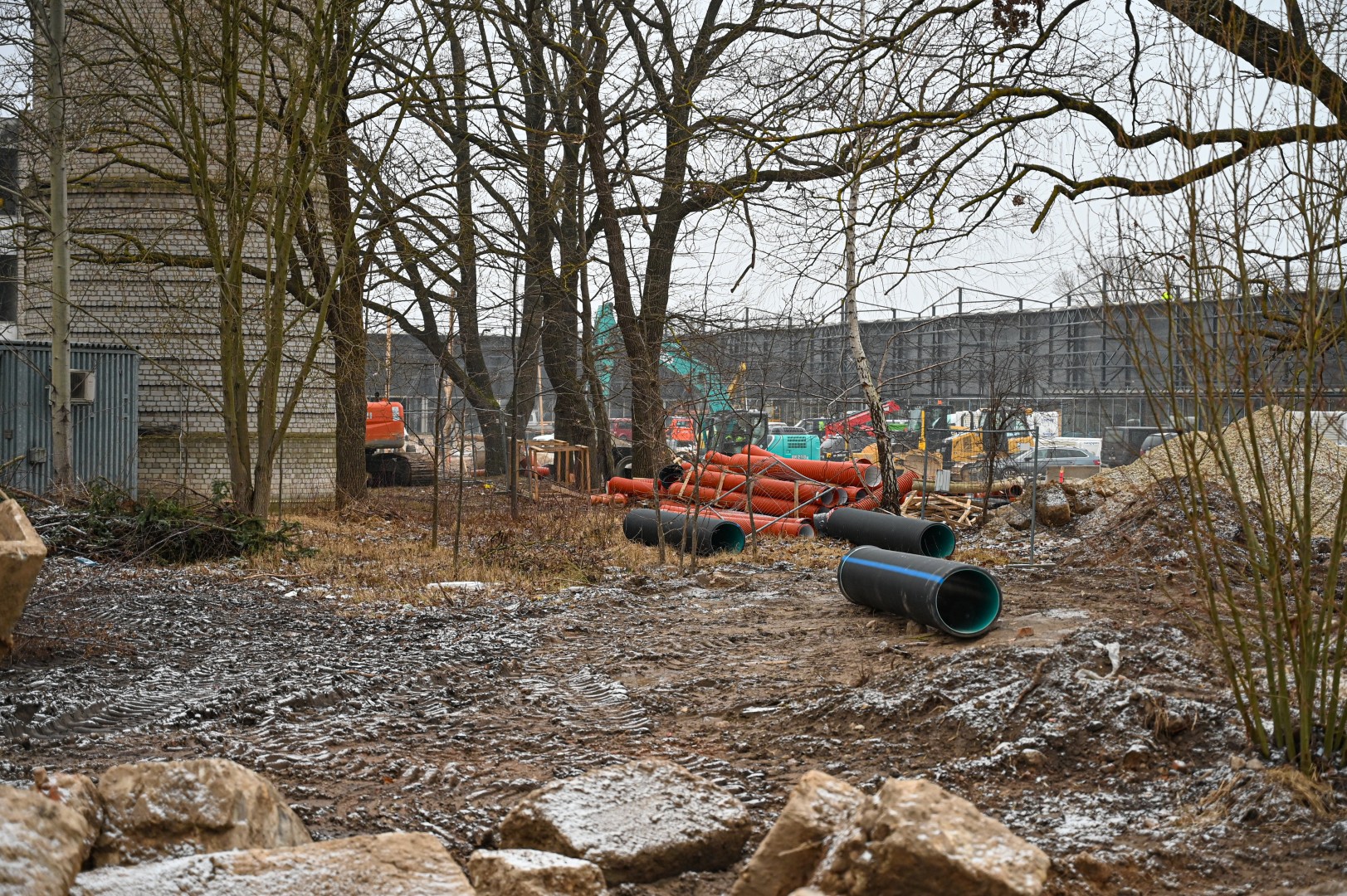 Statybininkams nurodyta imtis toje vietoje kasti žemes ir ieškoti taršos šaltinio.