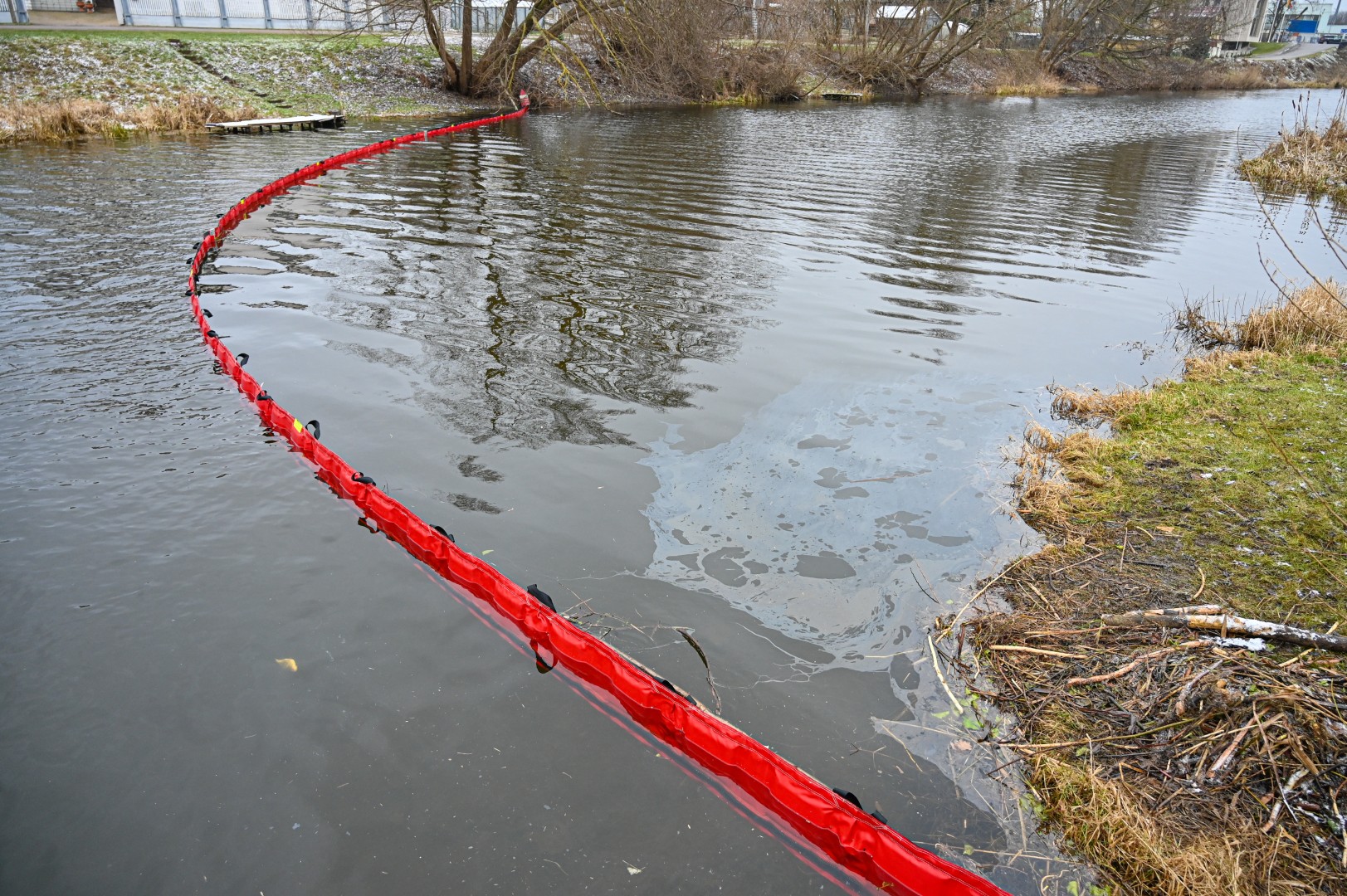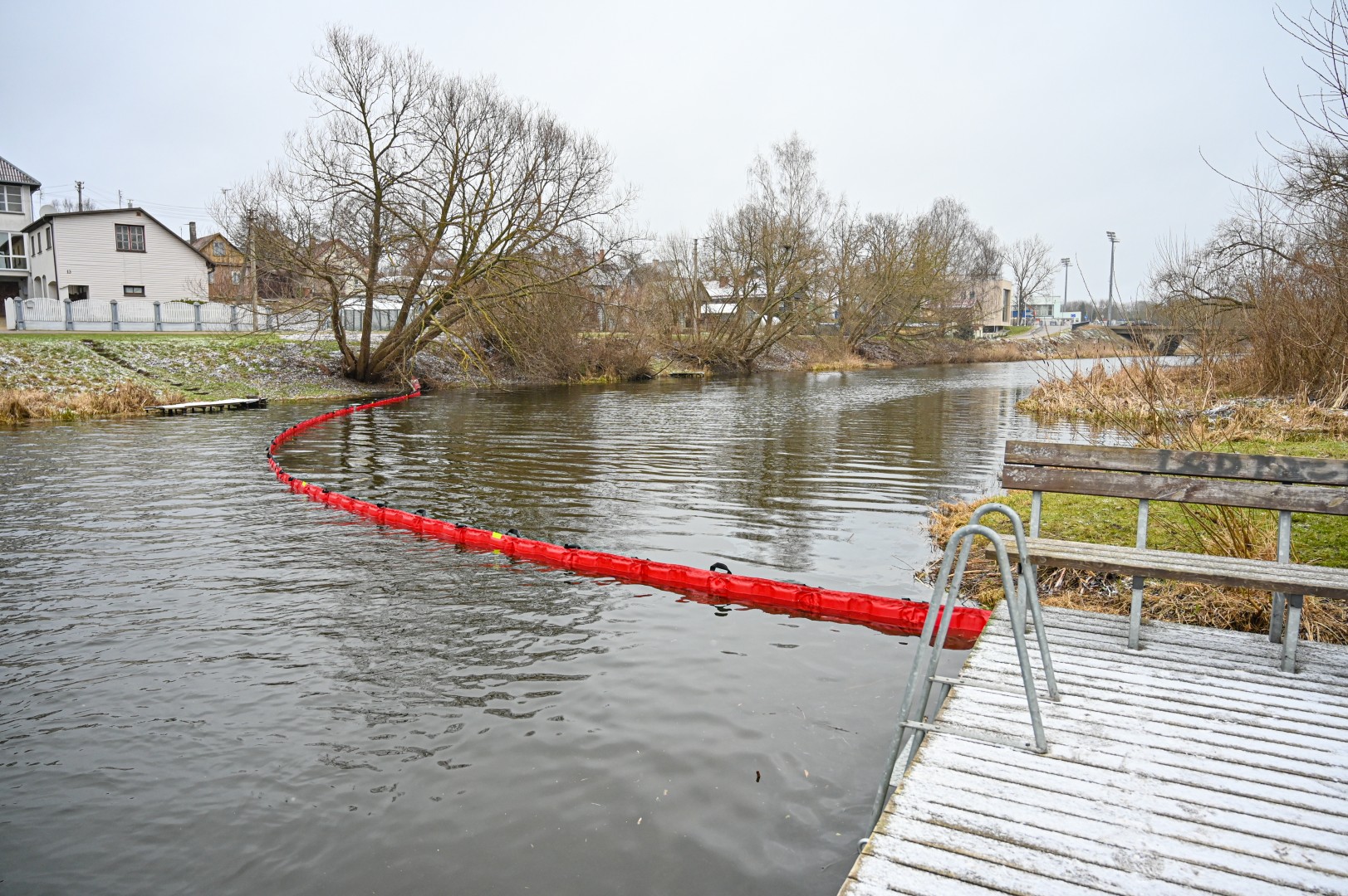 Iš karto kreiptasi į Priešgaisrinės gelbėjimo tarnybos specialistus, šie upėje įrengė užtvarus, vadinamuosius bonus, sulaikančius naftos produktus.