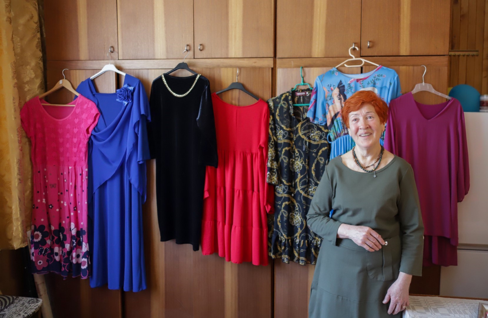 A. Vilčinskienės silpnybė – suknelės. Moteris jų sukaupusi netoli šimto, o patys pirmieji modeliai skaičiuoja daugiau kaip keturis dešimtmečius. I. Stulgaitės-Kriukienės nuotr.