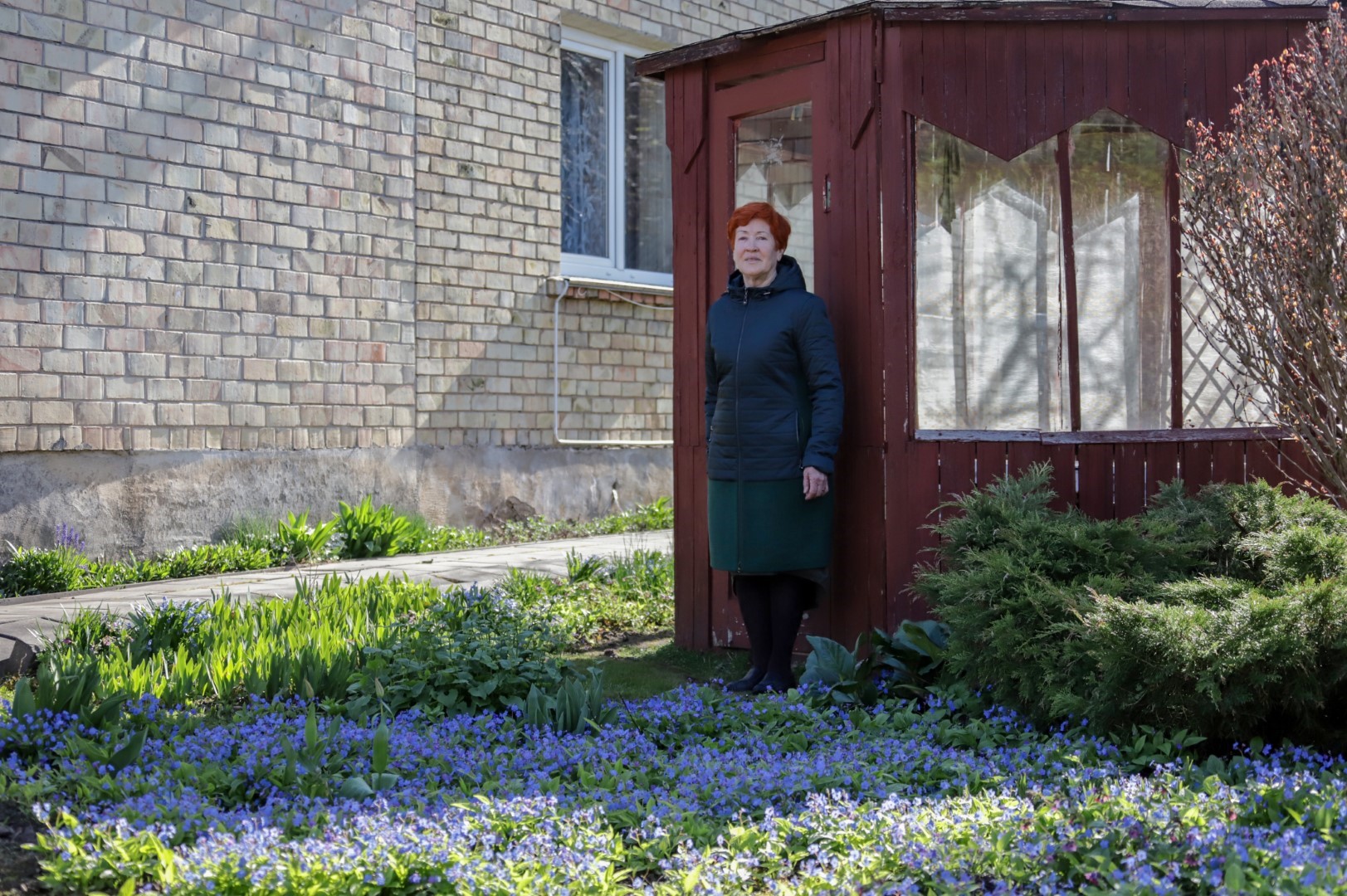 O kur dar pavasarį prasidedantys darbai aplink namus – nors ūkio nebeturi, tačiau Angelės sodyba skendi gėlynų jūroje. Gėlės – dar viena jos aistra, kuriai negailinti jėgų.