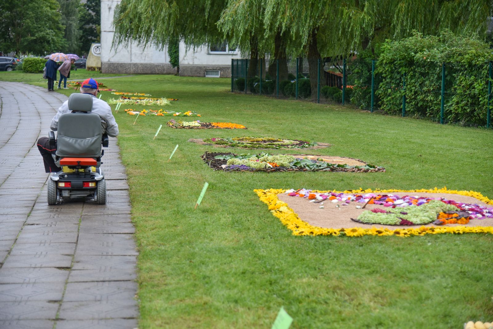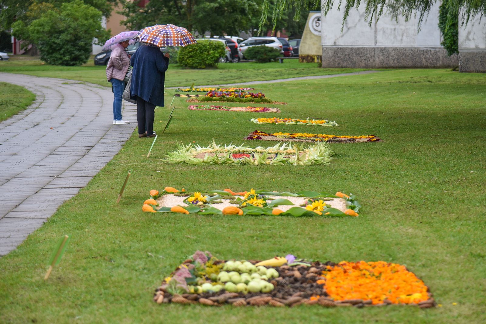 Iki Laisvės aikštės rekonstrukcijos kilimai iš žiedų, vaisių, pačių įvairiausių gamtinių medžiagų nuklodavo pievelę miesto širdyje. Šįkart akį traukiantys kūriniai nugulė Kniaudiškių gatvėje, šalia renginio organizatoriaus lopšelio-darželio „Puriena“. Jo direktorė Zita Kuncienė pasakoja, kad kai kurių švietimo įstaigų bendruomenės sukūrė ir po du kilimus.