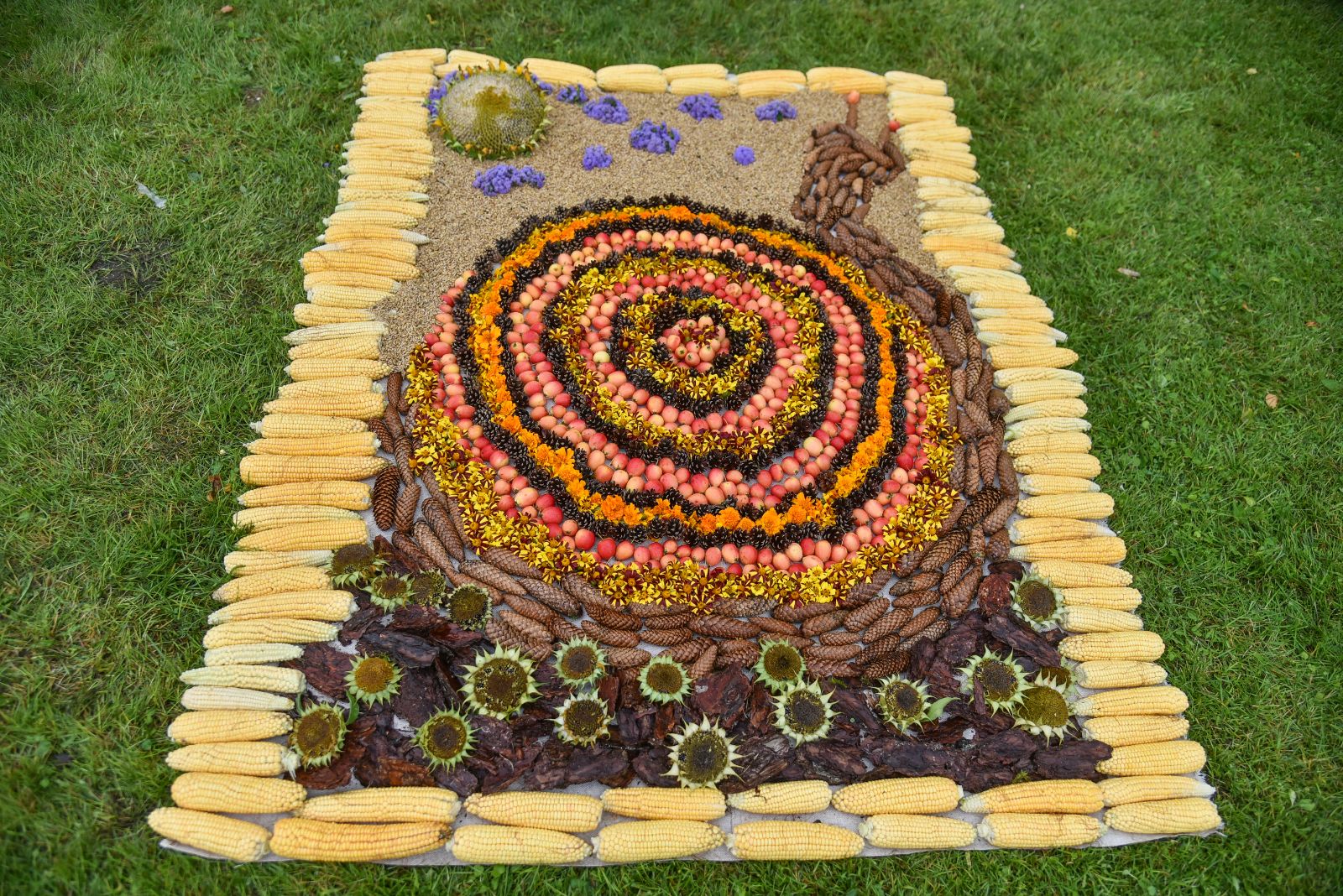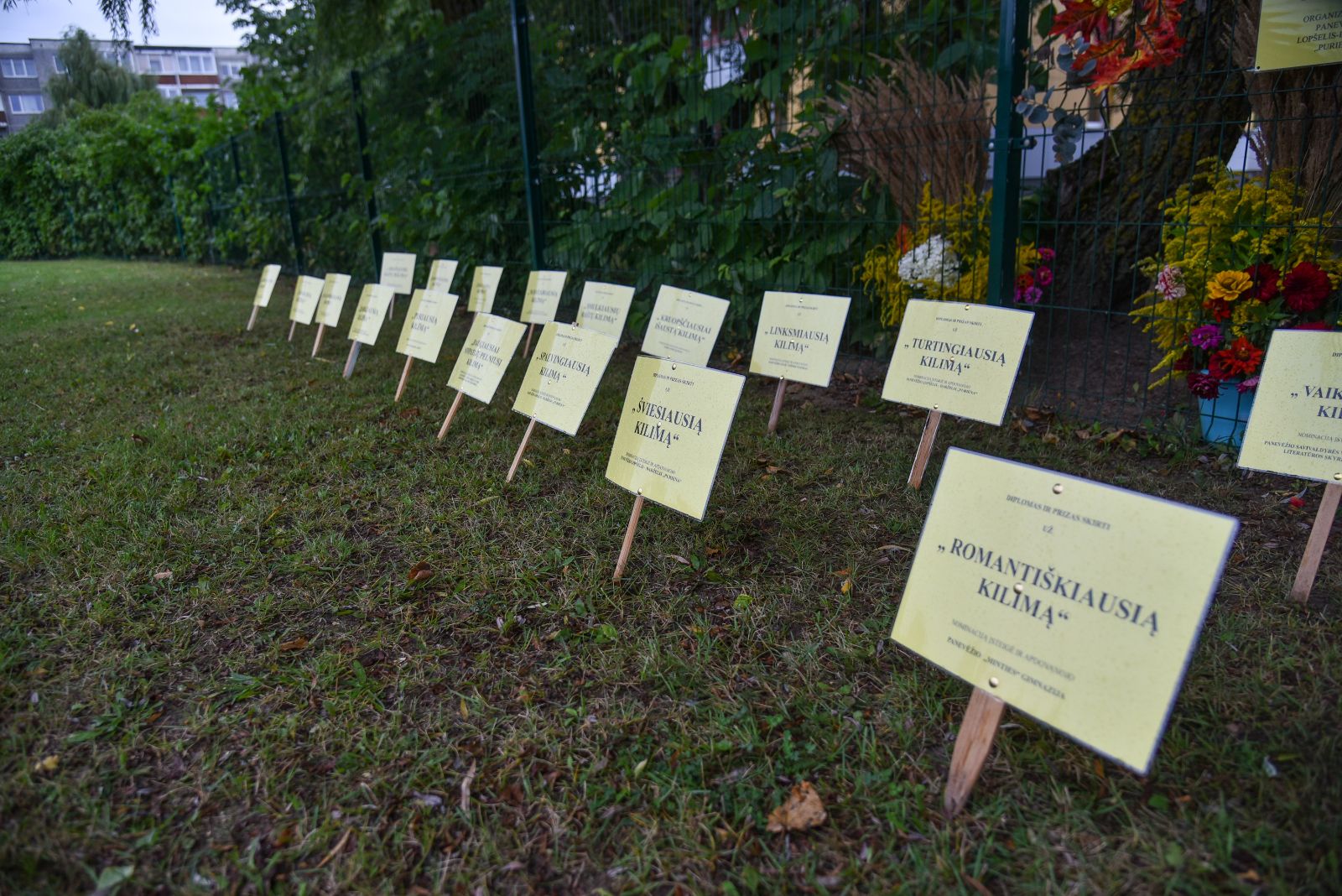 Pats „Purienos“ lopšelis-darželis turėjo net tris idėjas. Daugiausia balsų surinko darželio auklėtojos, kuri šiais metais bus pagerbta miesto Metų mokytojo apdovanojimuose, Linos Davainytės sumanymas. Kilimui naudotos įvairiausios medžiagos – saulėgrąžos, geltoni gvazdikai, grūdai, įvairiaspalvės rudens gėlės. Pasak direktorės, šiemet darželio bendruomenė sunešė tiek daug kilimui komponuoti reikalingų medžiagų, kad jų užteks sudėlioti ir dar vieną paties darželio teritorijoje.