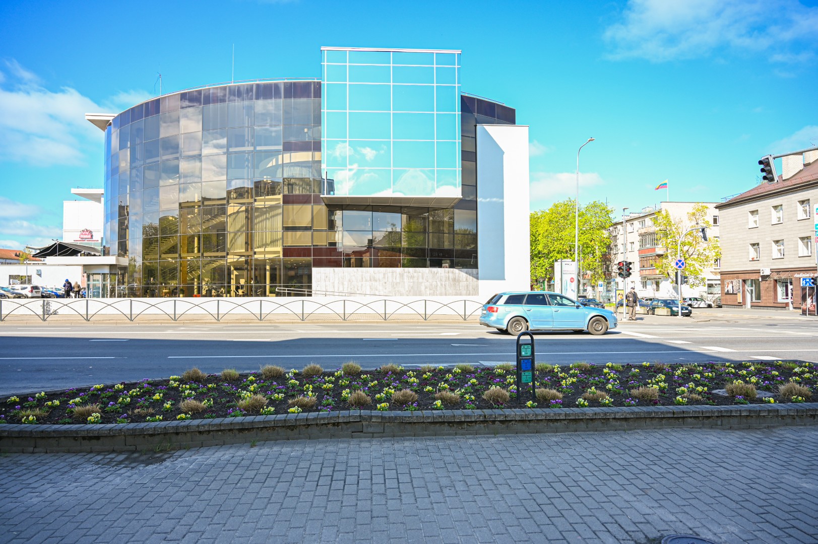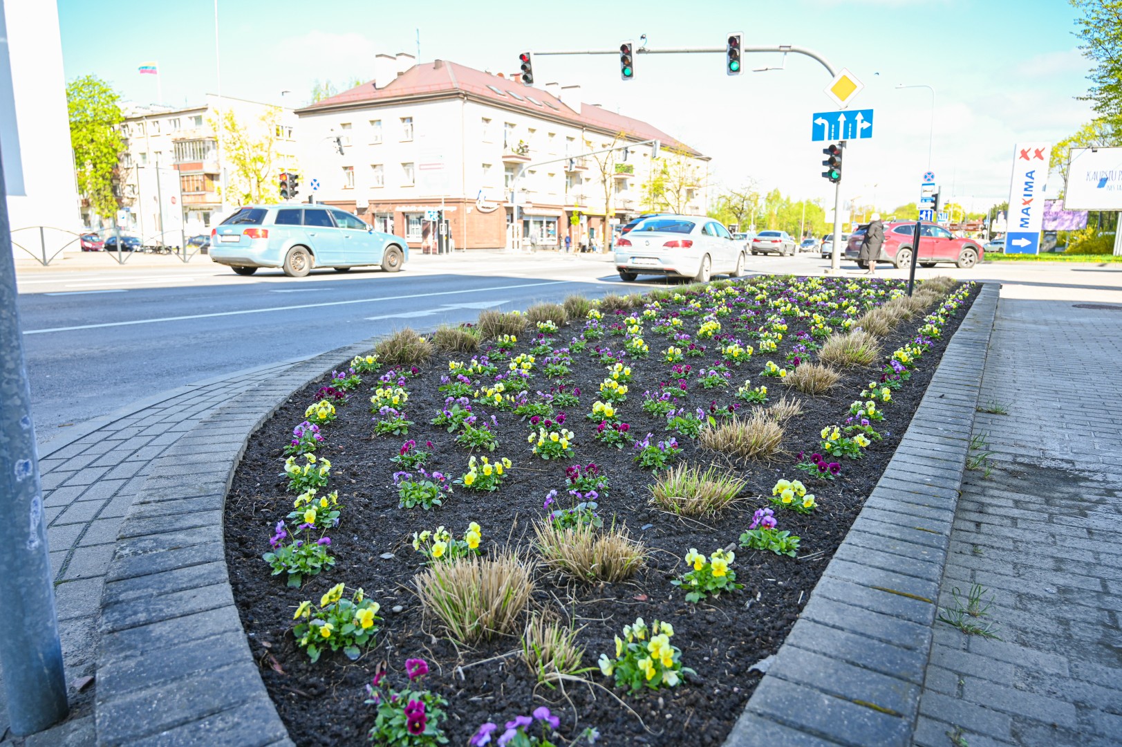 Šalia Ukmergės ir J. Basanavičiaus gatvių sankirtos jau žydi našlaitės, jų pasodinta ir į kai kuriuos betoninius vazonus.