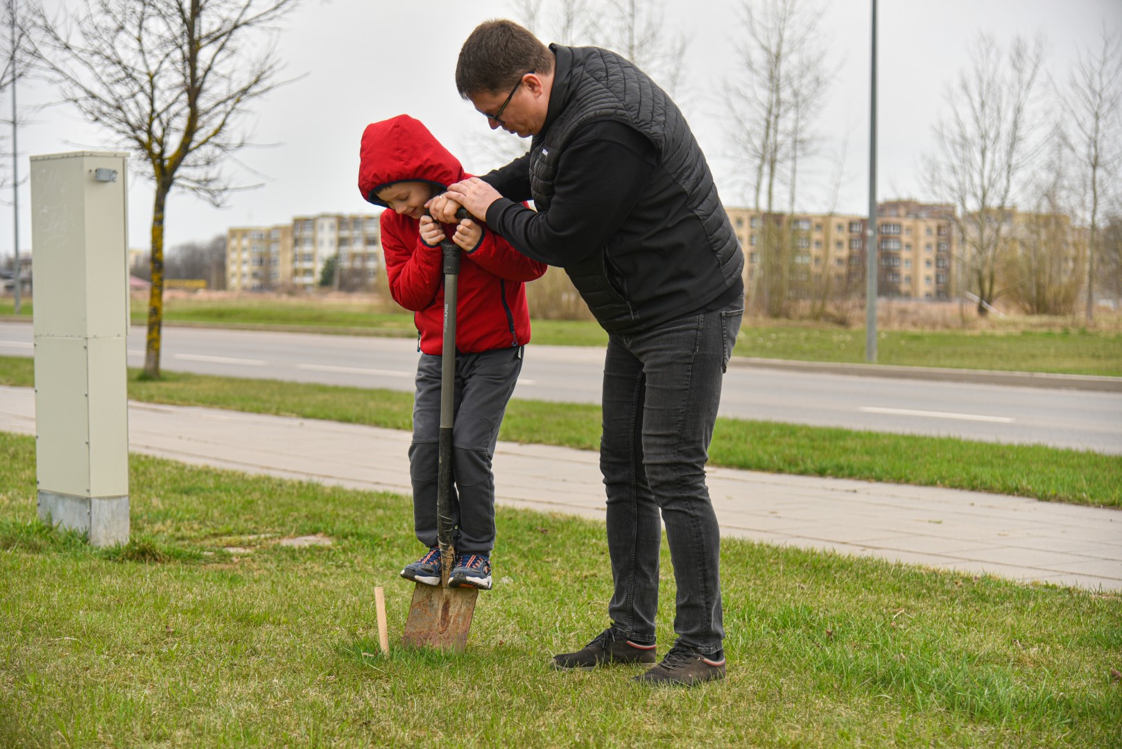 Sodinti medelių susirinko ir pavieniai entuziastai, ir šeimos su vaikais. Sodinančius tėvelius atidžiai stebėjo netgi dar vežimėliuose besiilsinčios atžalos.