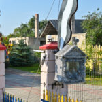 O štai prie kiemo vartų naujamiestietis pasistatė koplytėlę, joje – šventųjų ir angelų statulėlės. Šeimininkas pastebėjo ne vieną pro šalį einančią moteriškę stabtelint prie koplytėlės ir net žegnojantis.