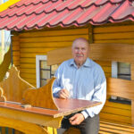Kiek tolėliau už sparnuotos trobelės – paties pasistatyti net du namai, sujungti stiklo galerija. Tyvuliuoja jo iškastas tvenkinys, kuriame plaukioja didžiulės gražios žuvys.