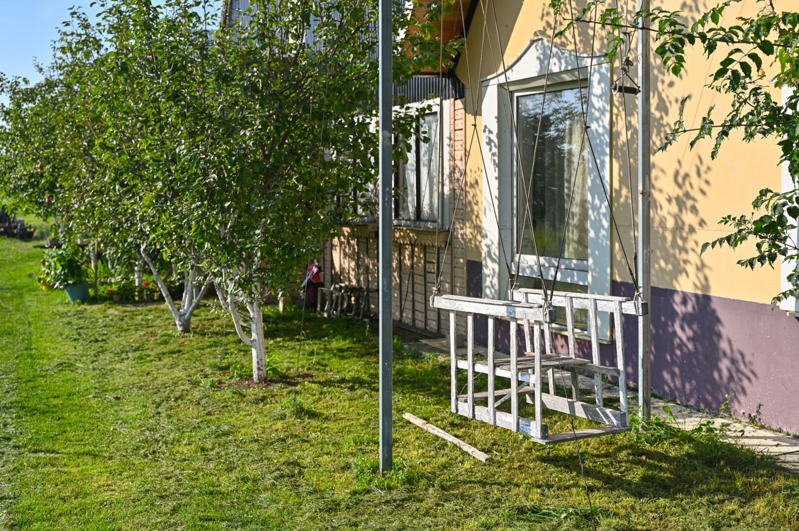 Už pušų – Romo sumeistrautos sūpynės. Tokio aukščio, kad įsisiūbavus atrodo, jog pasieksi patį dangų.