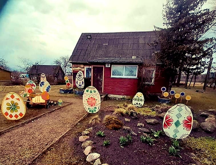 Raguvos centre akį traukia velykinė alėja, Pragarėlės gyventojai didžiuliais kiaušiniais papuošė bendruomenės namų kiemą, Perekšliuose nutūpė šiaudiniai paukščiai.