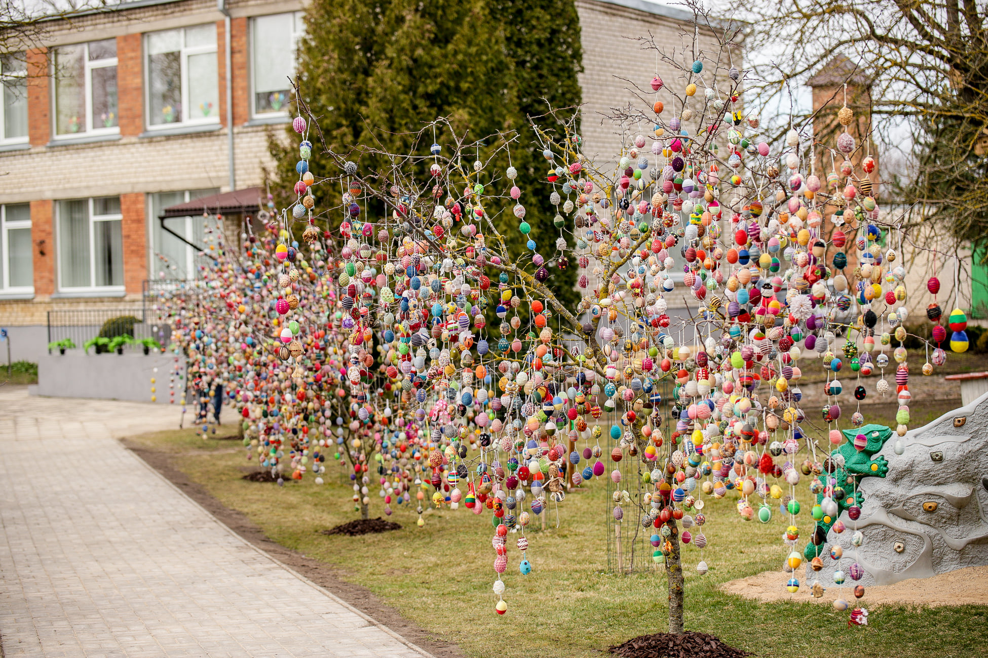 Nors darželio bendruomenės puoselėjama tradicija jau ne kartą buvo pripažinta Lietuvos rekordu, tačiau, pasak direktorės, Velykų medžiai „sodinami“ ne dėl to.