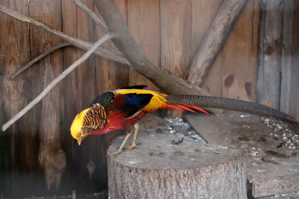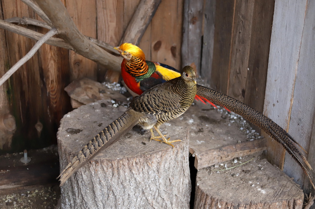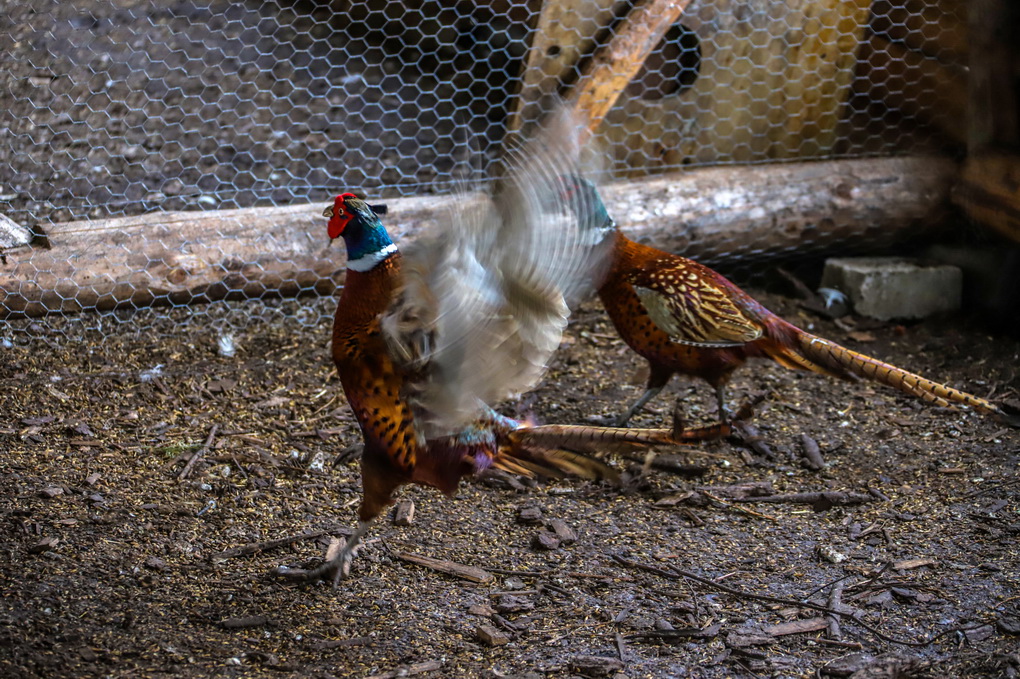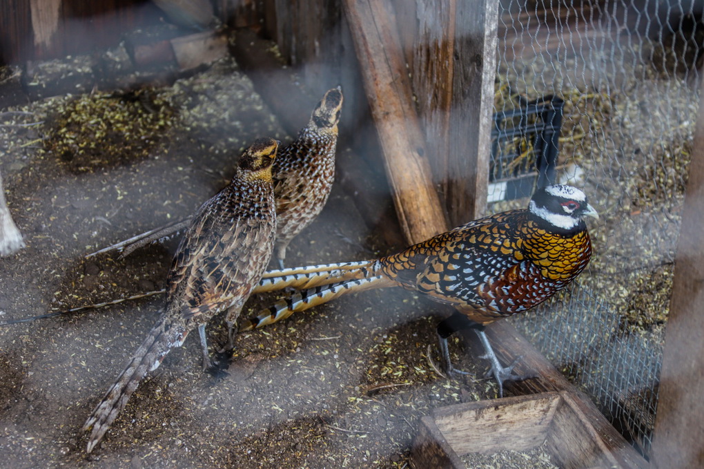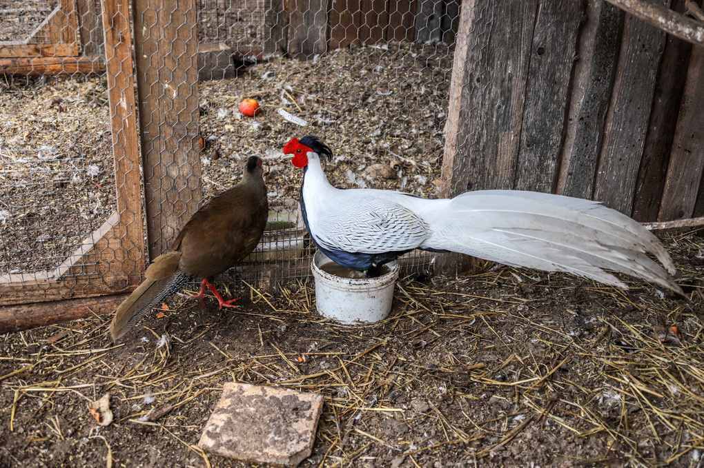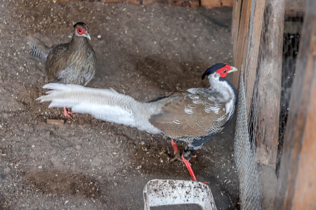 „Čia sidabrinis fazanas – jis vienintelis gindamas patelę kedena sparnus. Čia bananinis, toliau auksinis, karališkasis. Pats brangiausias – mėlynasis ausytasis fazanas, jo patelė susirgo“, – su išskirtiniais kiemo sparnuočiais skuba supažindinti šeimininkas.