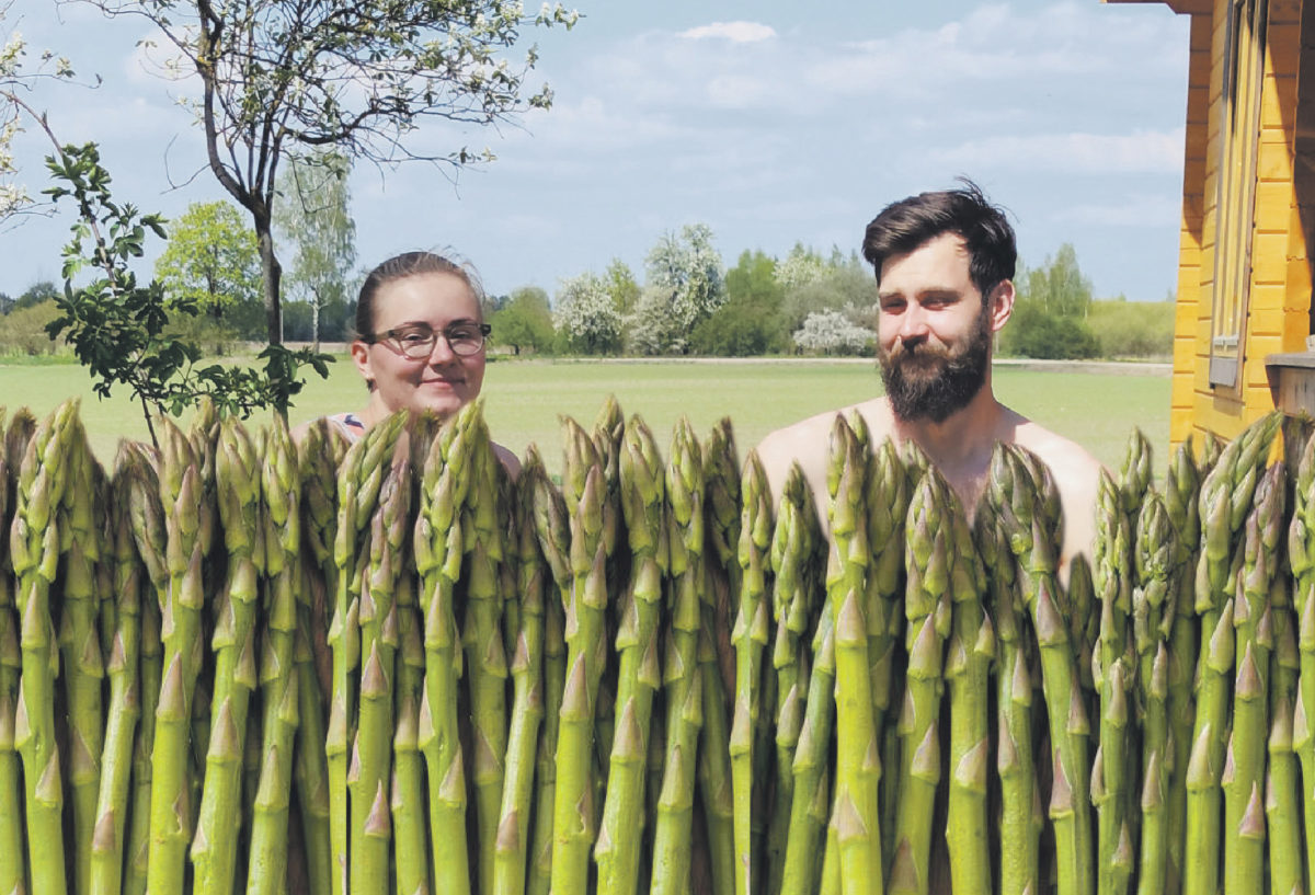 Šiomis šiltėjančiomis gegužės dienomis Algimanto ir Kotrynos Meidų ūkyje pats darbymetis. Pačių šeimininkų rankų jame jau nebeužtenka, dar ir būrelis samdytų darbininkų padeda porai nuimti sparčiai derantį smidrų derlių. 2017-aisiais nusprendę nerti į žemės ūkį sutuoktiniai Anykščių rajone, Alukėnų kaime, ėmėsi auginti šias lietuvių virtuvėje dar visai neseniai pradėtus vartoti šparagus.