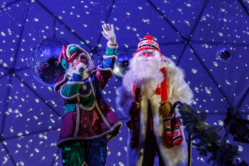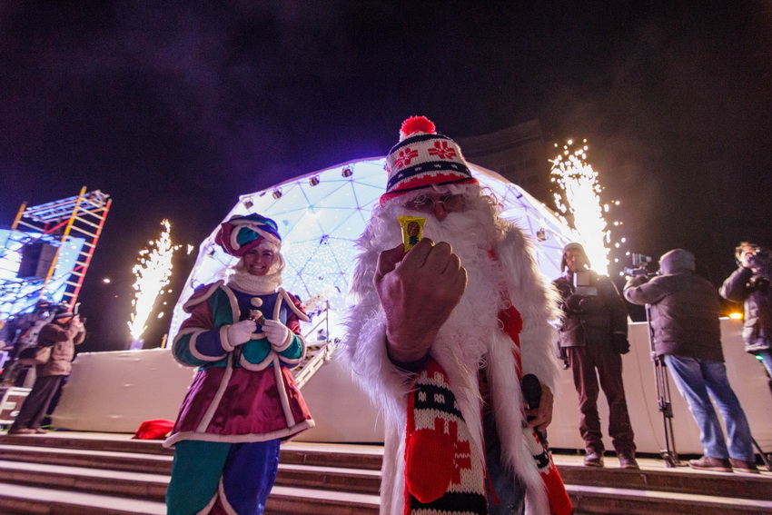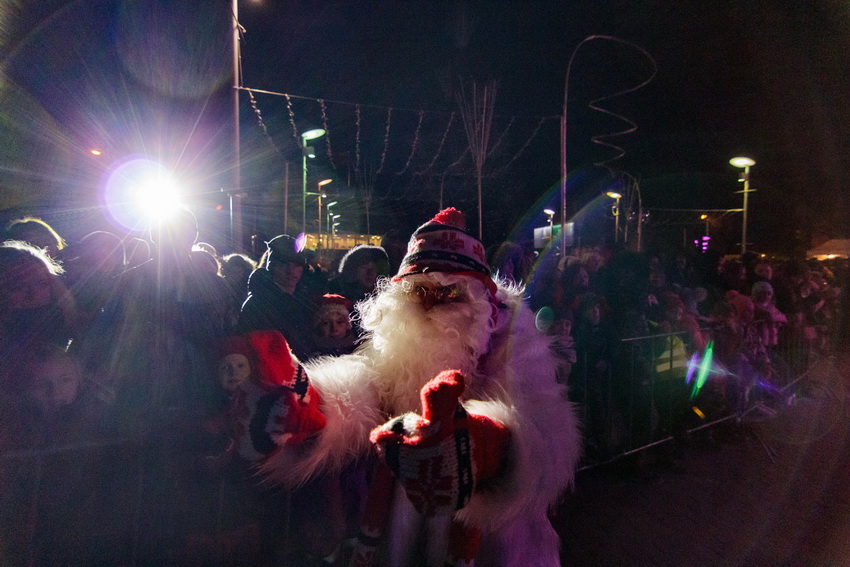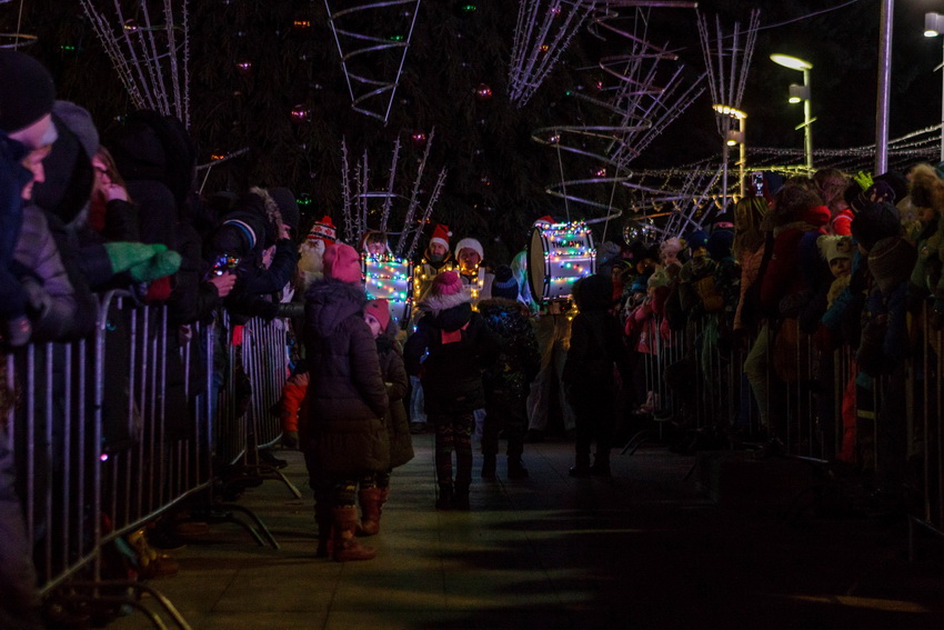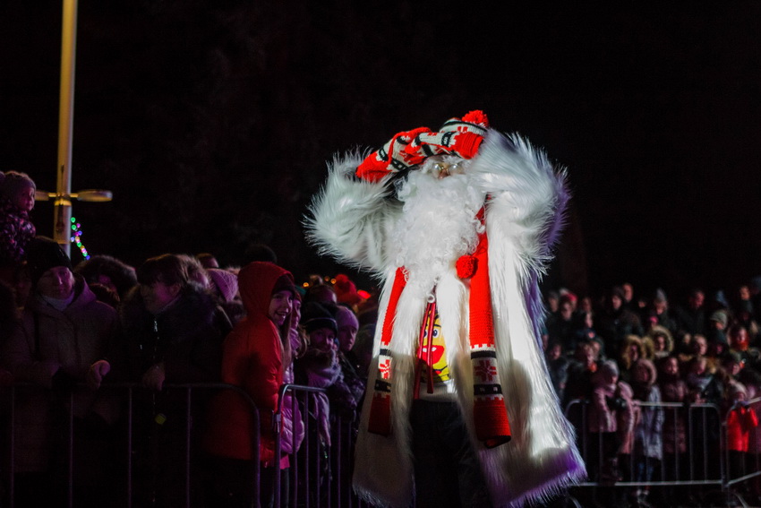 Pirmasis nuotaiką susirinkusiems vaikams ir jų tėveliams užkūrė Kalėdų Senelis. Jis grožėjosi egle ir kitais aikštės papuošimais, bendravo su šventės dalyviais, fotografavosi, rinko vaikučių rašytus jam laiškus ir čia pat skaitė – kad suskubtų išpildyti mažų širdelių troškimus. Vieno tų laiškų autorius – aštuonmetis pradinės mokyklos mokinukas – prašė iki žiemos švenčių iš Jungtinės Karalystės sugrąžinti tėvelius ir padovanoti naują lėktuvėlį. Kalėdų Seneliui parašiusios mergaitės noruose – nauji akiniai močiutei.