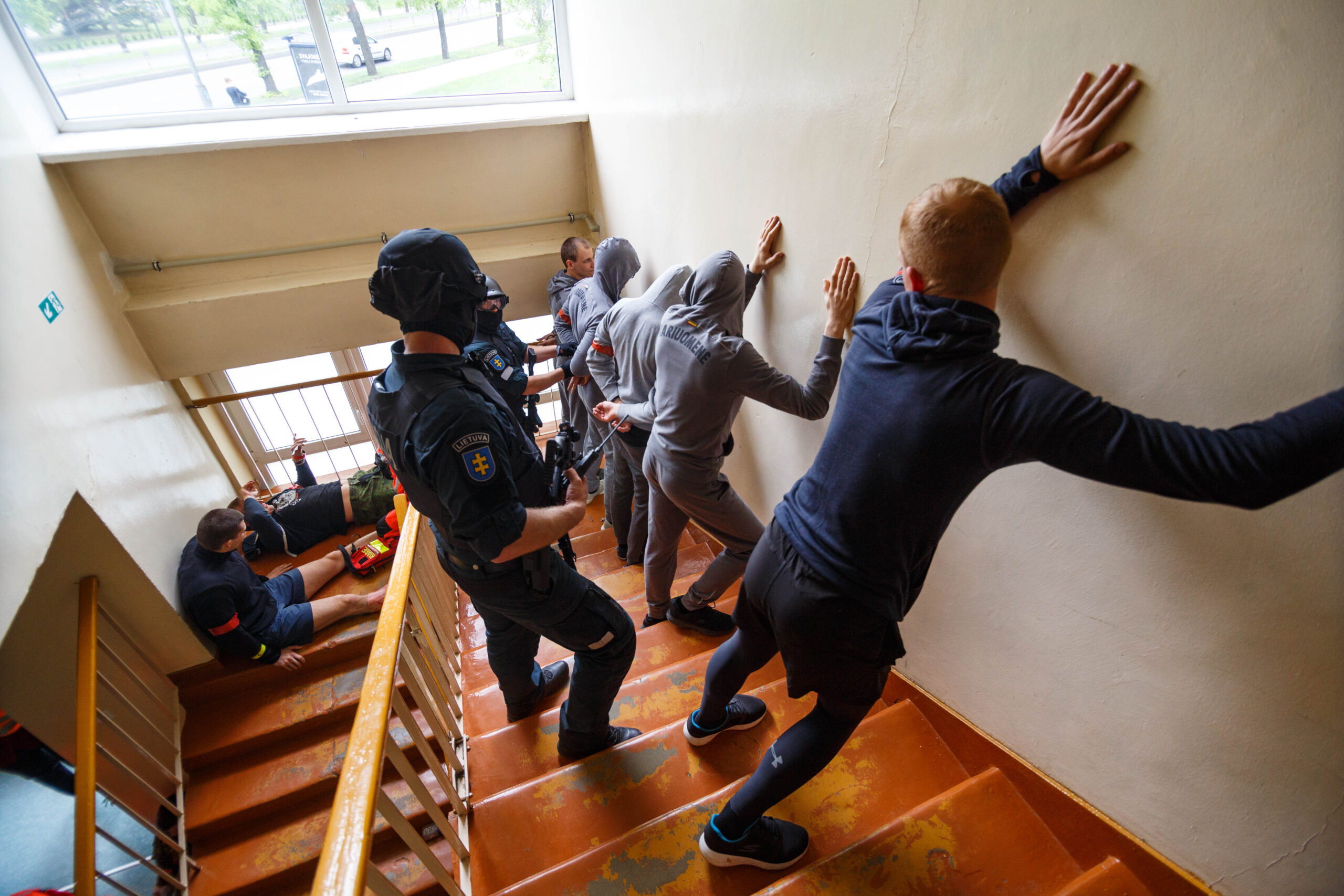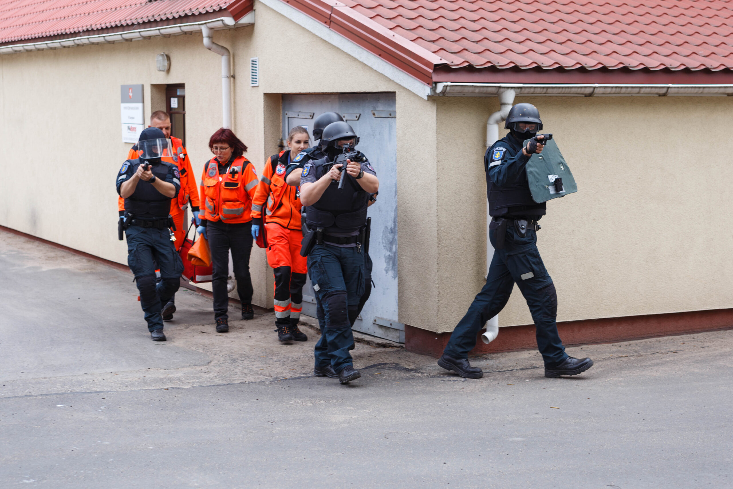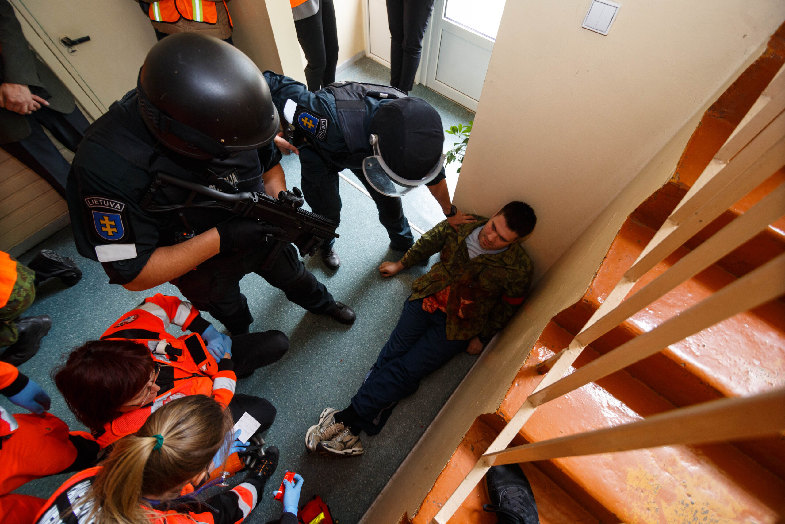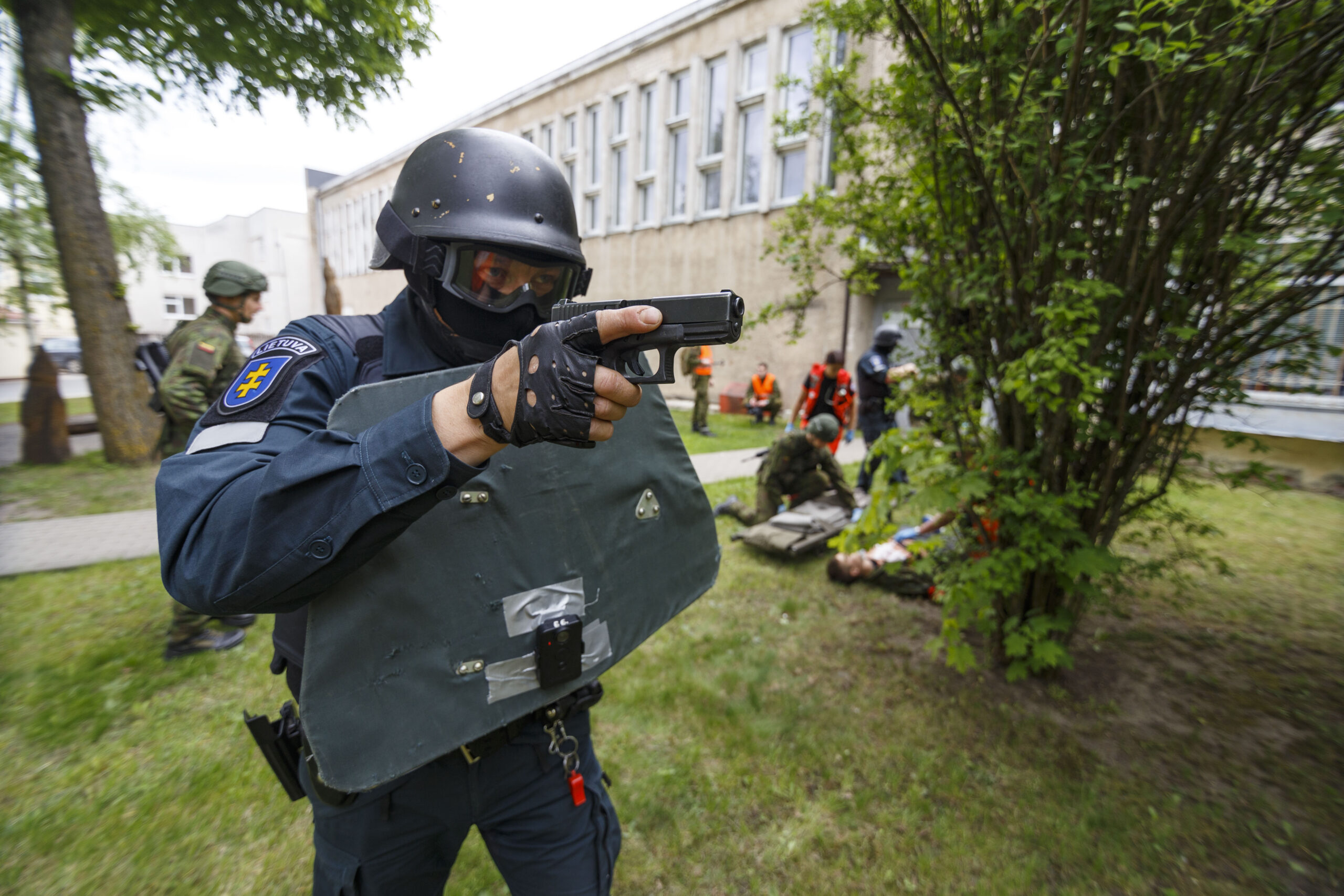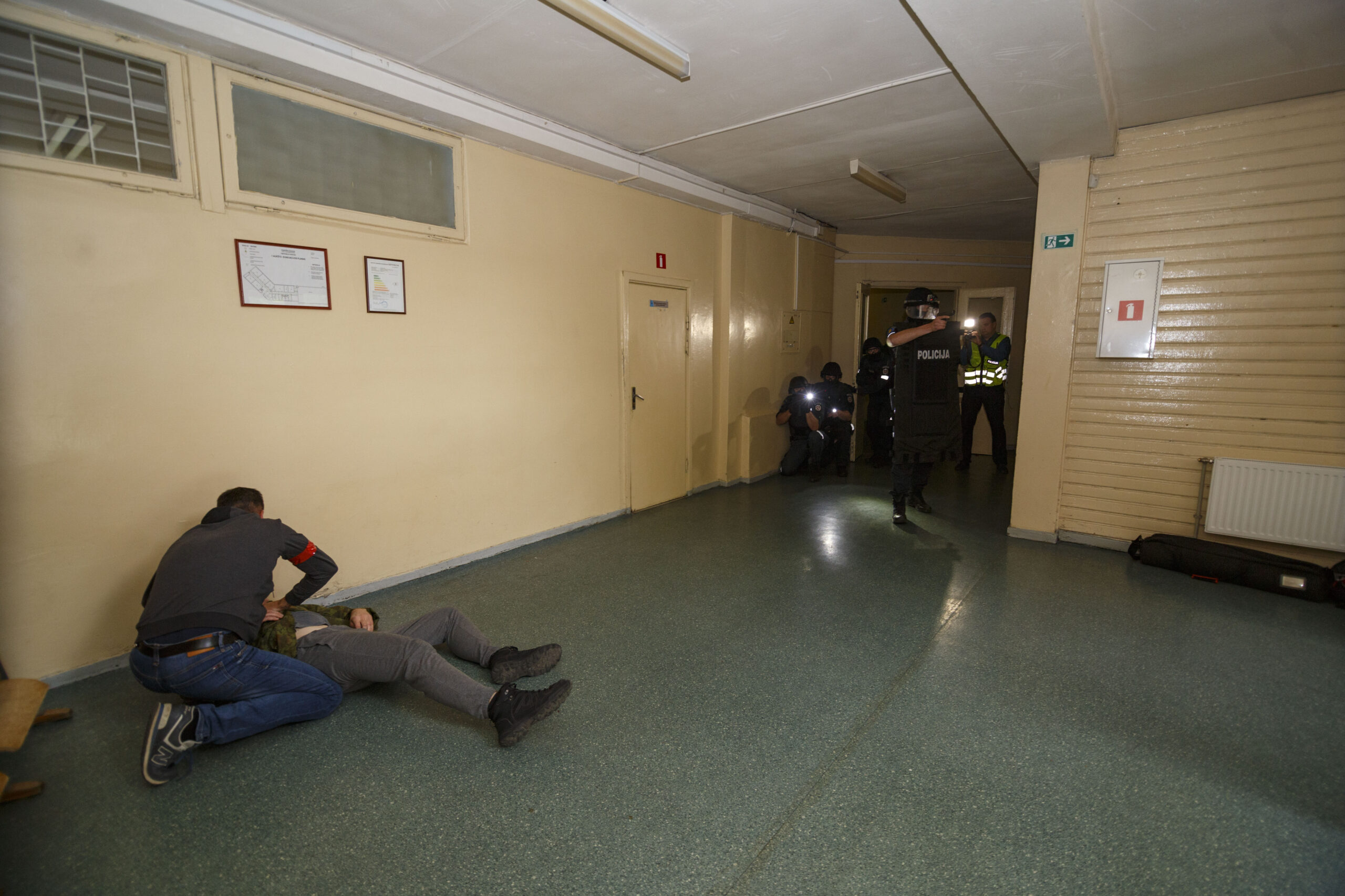 Ketvirtadienio popietę įvykiai Panevėžio kolegijos patalpose ir šalia jų priminė veiksmo filmą. Vykstant paskaitoms, kažkokie piktų kėslų turėję asmenys viduje pradėjo šaudyti, sužeidė ne vieną studentą, spėta, kad gali būti įkaitų. Laimė, visa tai tebuvo dvi savaites truksiančių Karaliaus Mindaugo husarų bataliono karinių pratybų dalis.