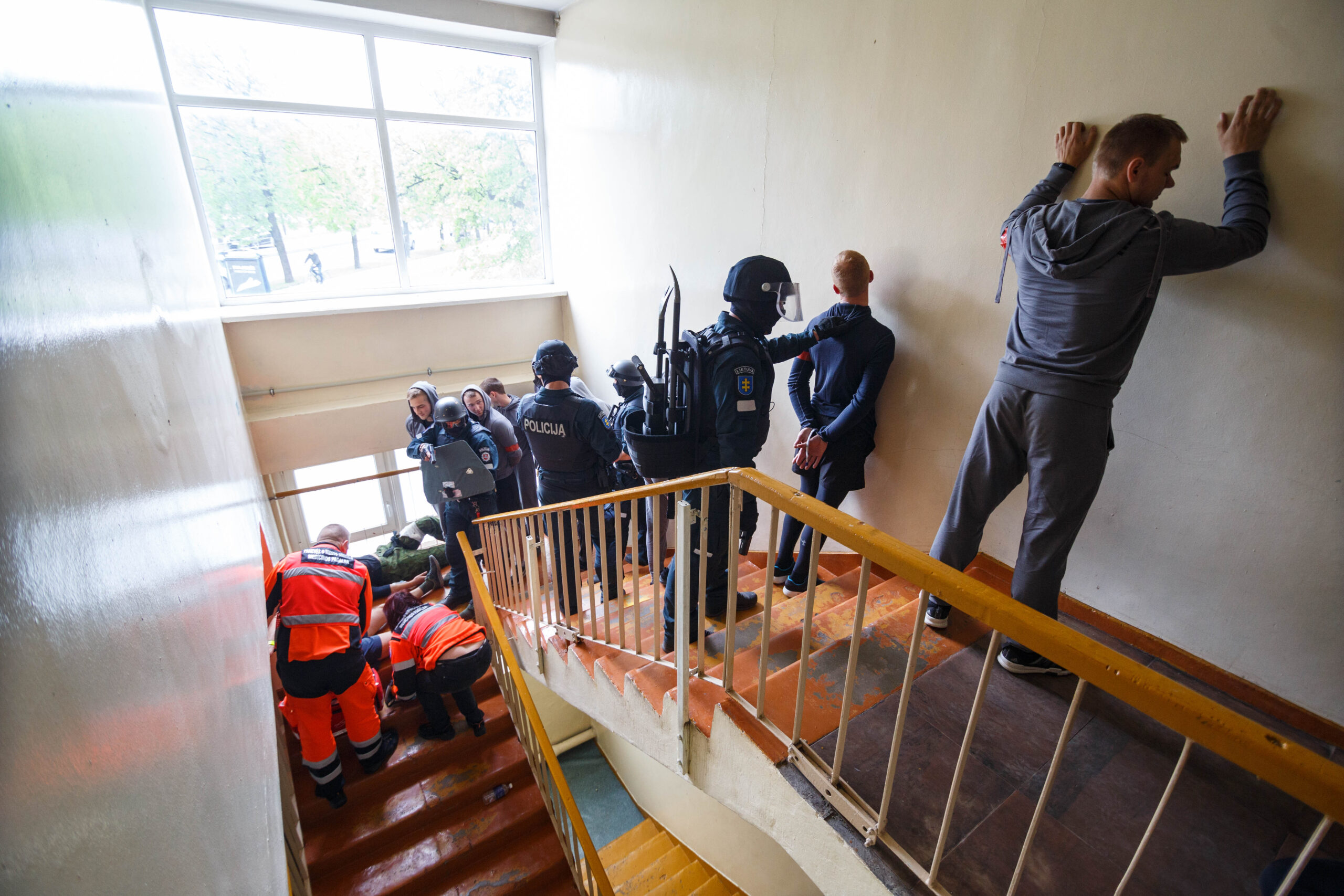 Pratybų metu tikrų studentų šiame korpuse neturėjo būti – paskaitos pasibaigė kiek anksčiau.
