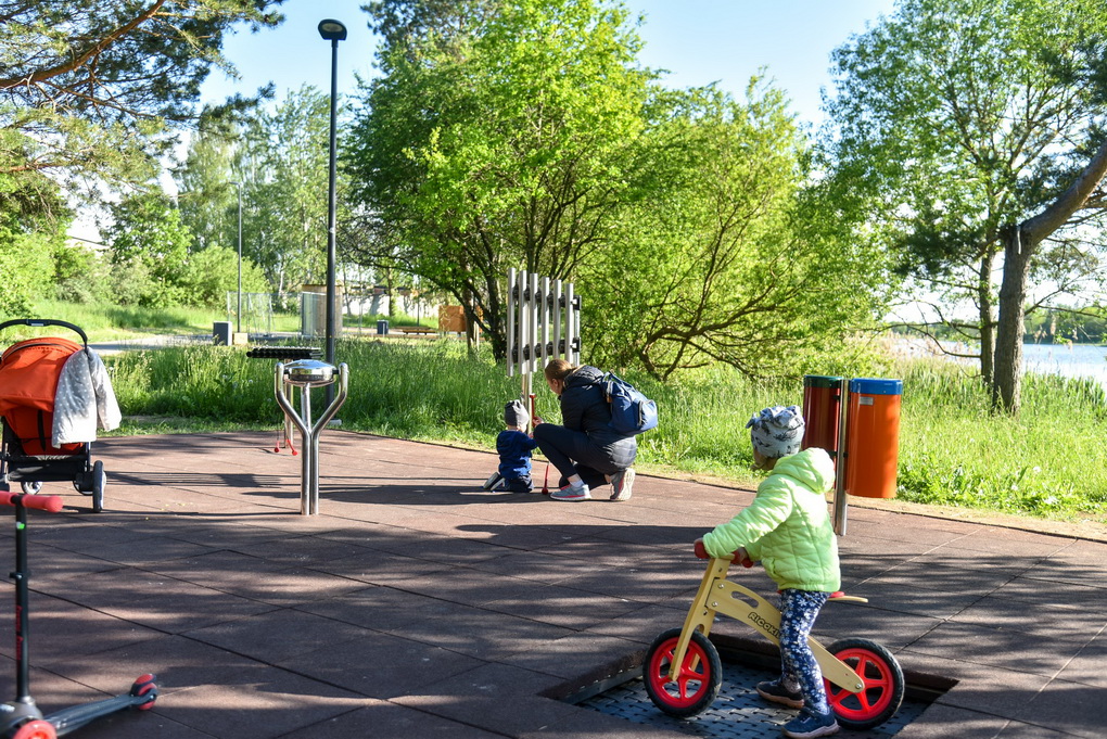 „Ekrano“ marių pakrantėje viena paskui kitą išsibarsčiusios poilsiavietės su prieplaukomis, terasomis ant vandens ir pramogauti masinančiais įrenginiais – ne tik jau įprastais sporto treniruokliais, futbolo ir teniso stalais, bet ir lauko muzikos instrumentais. Kaip šie skamba, jau įvertino panevėžiečiai. Netgi rytais prie marių galima išgirsti metalofono garsus – šitaip smagiai dieną pradeda čia rytinei mankštai susirenkantieji.