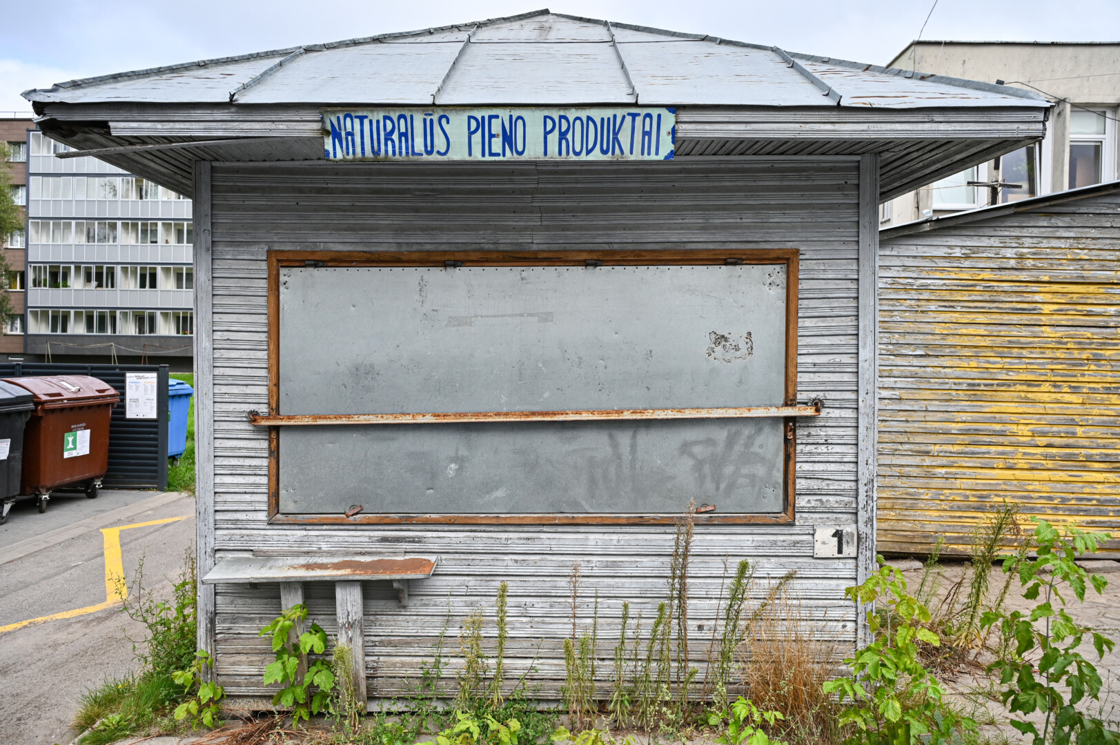 Prie pat šių apleistų prekybos vietų stovi komunalinių atliekų konteineriai, tačiau aplinkui juos tvarkinga, valytoja puikiai dirba. O kioskų teritorija kelia pasibaisėjimą.