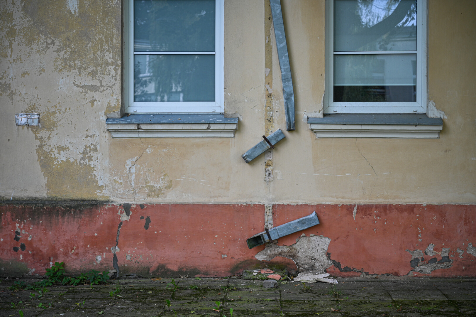 Nuo jo terasos byra tinkas, grasina iškristi plytos.