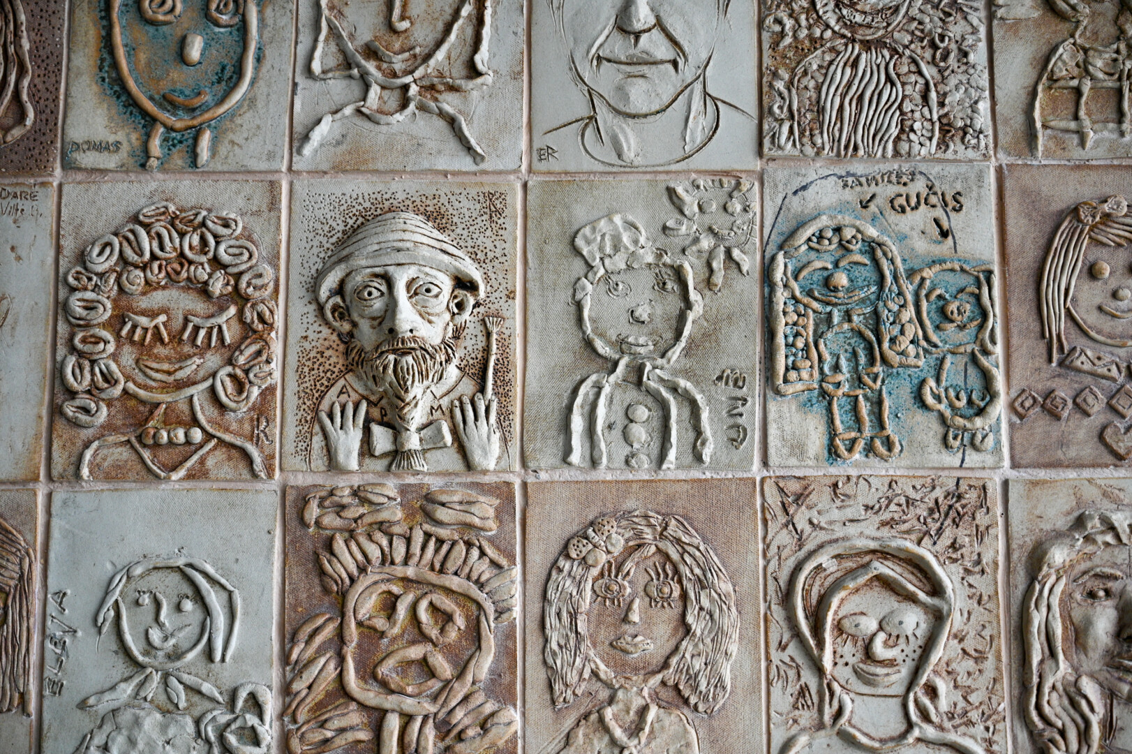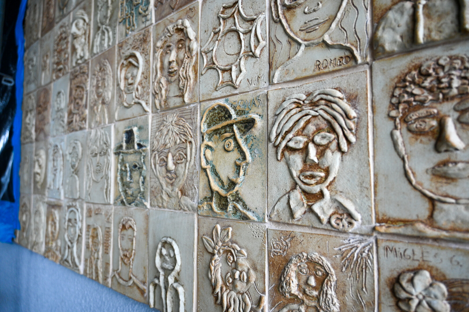 Pernai ant tunelio sienos sukabinti 198 panevėžiečių iš šamoto nulipdyti, paskui krosnyje, 1260 laipsnių temperatūroje išdegti portretai.