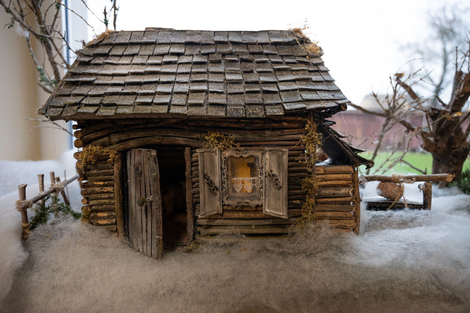 Namuose norėjosi sukurti kalėdinę pasaką, taip atsirado pirmasis mažulytis namelis, paskendęs iš