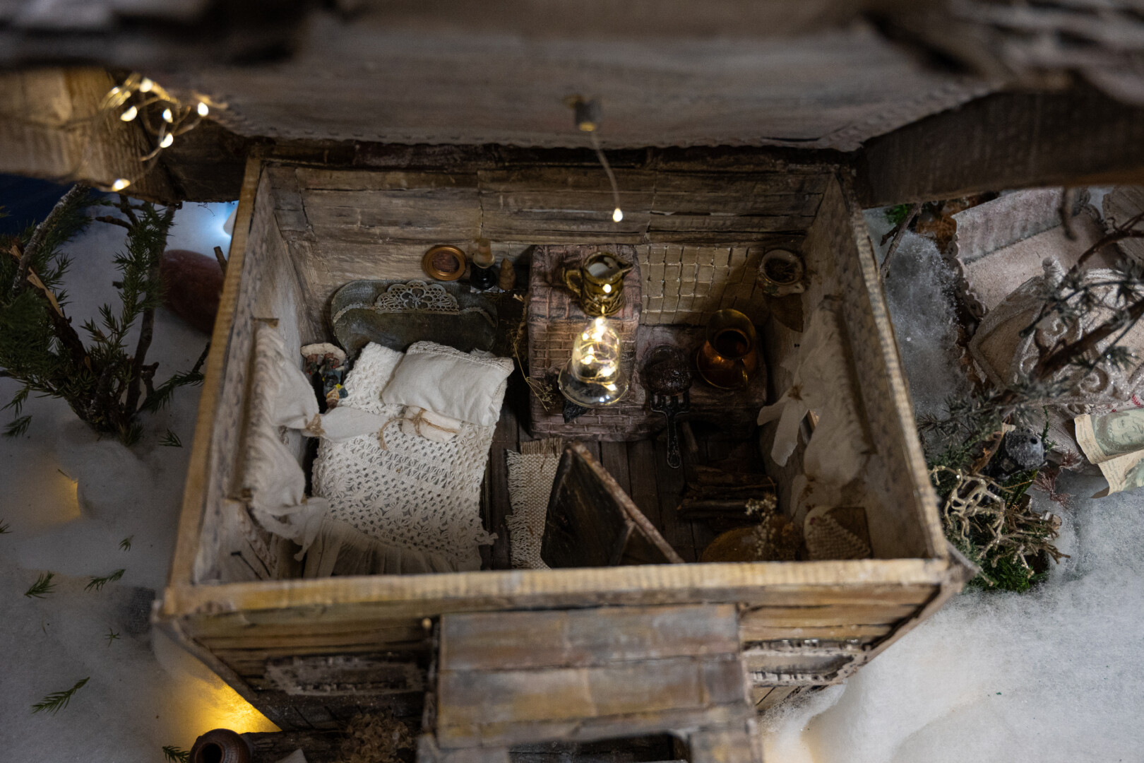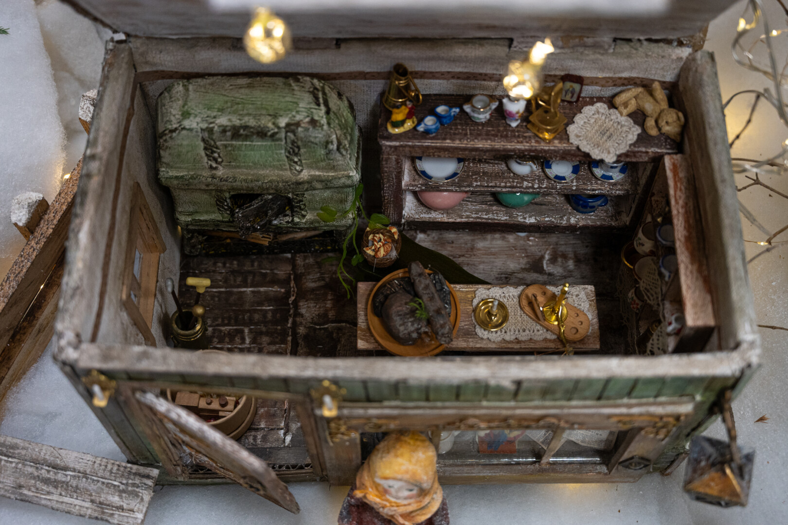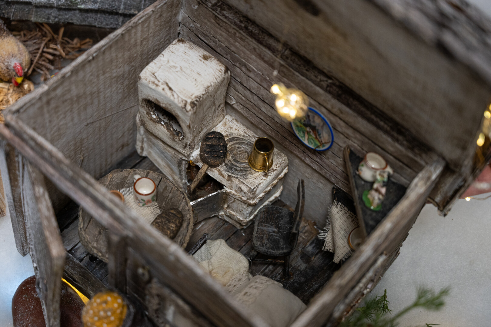 Krautuvės lentynose rikiuojasi produktai, kaimo troboje lova užklota nėriniuotais patalais, krosnis tokia jauki, kad net norisi prie jos sušilti, paliesti norisi drobinius rankšluosčius, atsiriekti riekę iš miniatiūrinio duonos kepalėlio, įsipilti pieno iš ąsočio.