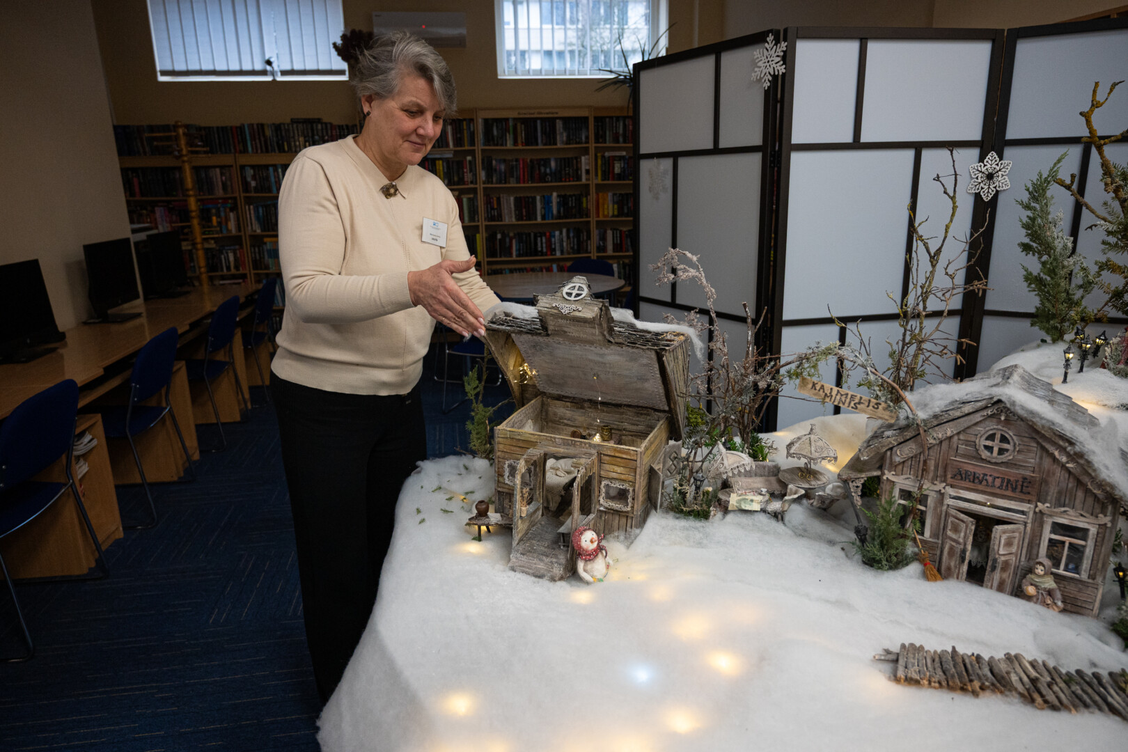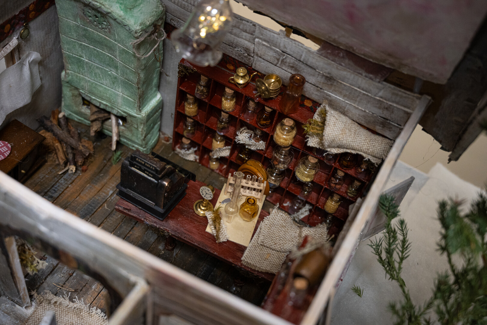 Panevėžio Smėlynės bibliotekoje eksponuojami septyni namukai su neįtikėtinai smulkmeniškai sukurta kaimo buitimi tėra dalis visos įspūdingos kolekcijos.