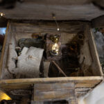 Visų namelių viršus atsivožia, įsižiebia šviesa ir atsiveria buitis, kokioje lietuviai sukosi prieš šimtą metų.