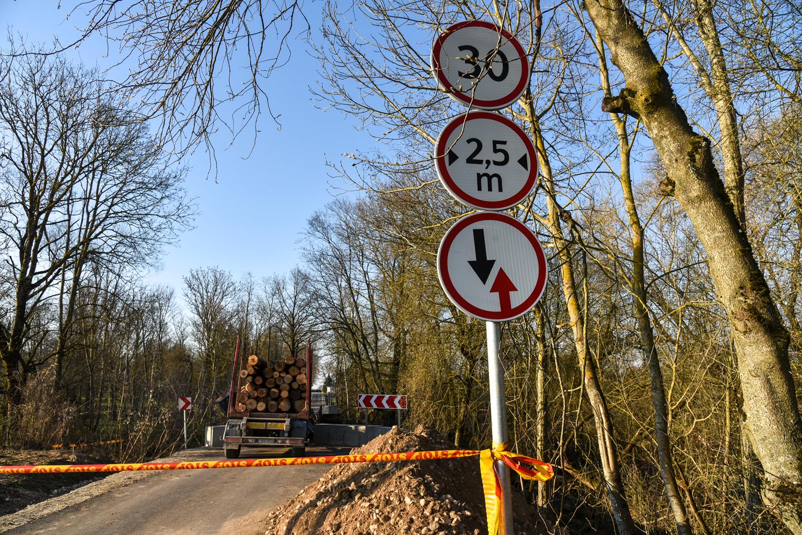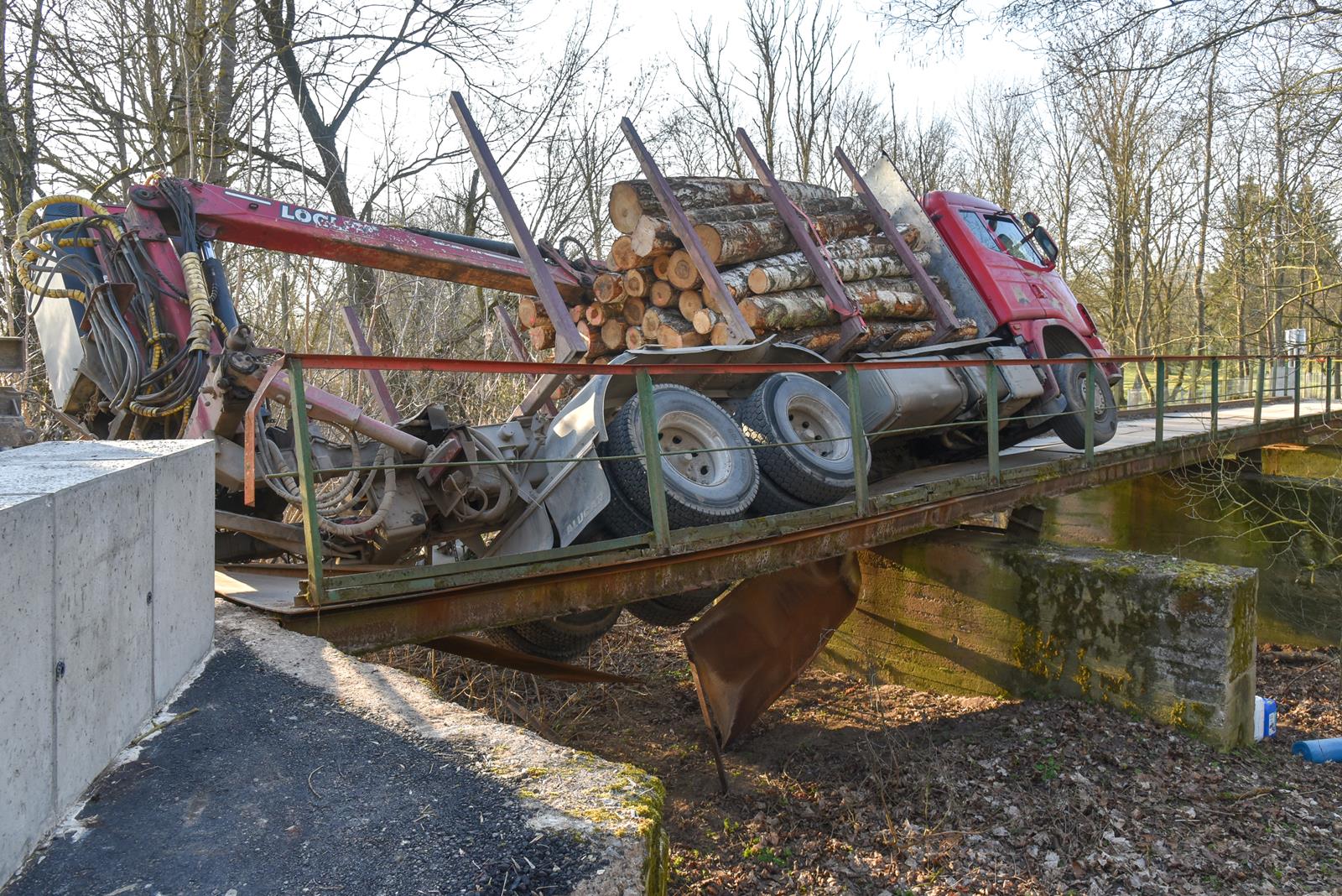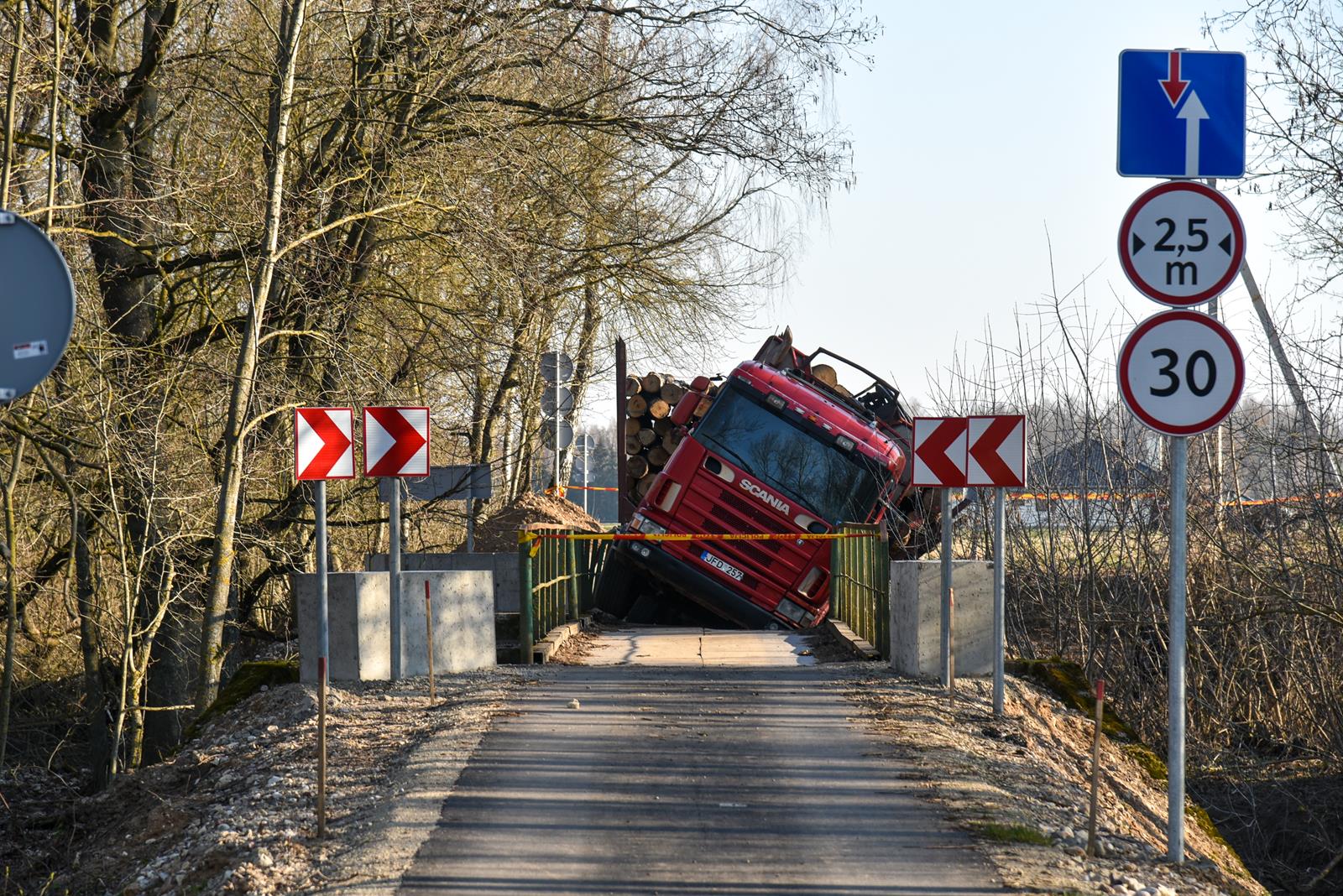 Neeilinis įvykis Panevėžio rajone. Neišlaikęs rąstus vežusio miškavežio svorio, lūžo tiltas.