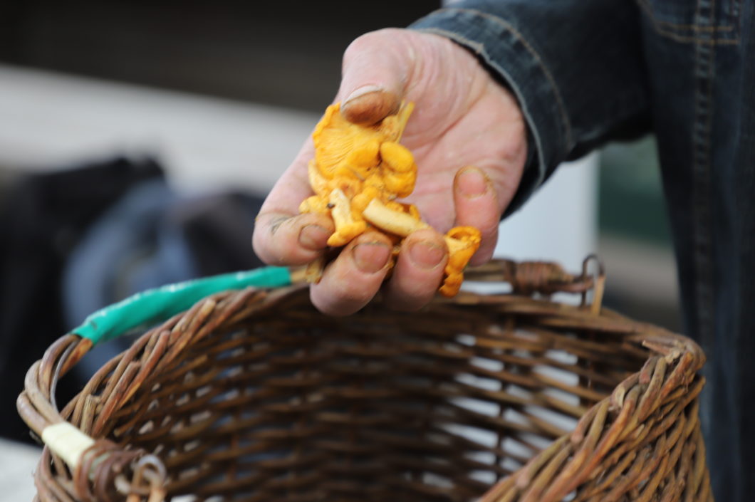 Kad grybai – puikus būdas prisidurti prie pensijos, neslepia ir voveraitėmis prekiaujantis Alfonsas Kapšys. Senjoras didžiausią pintinę voveraičių antradienio vakarą pririnko Taruškų miškuose. Tarp geltonų grybų išsiskiria gražuolis lepšis.
