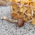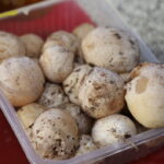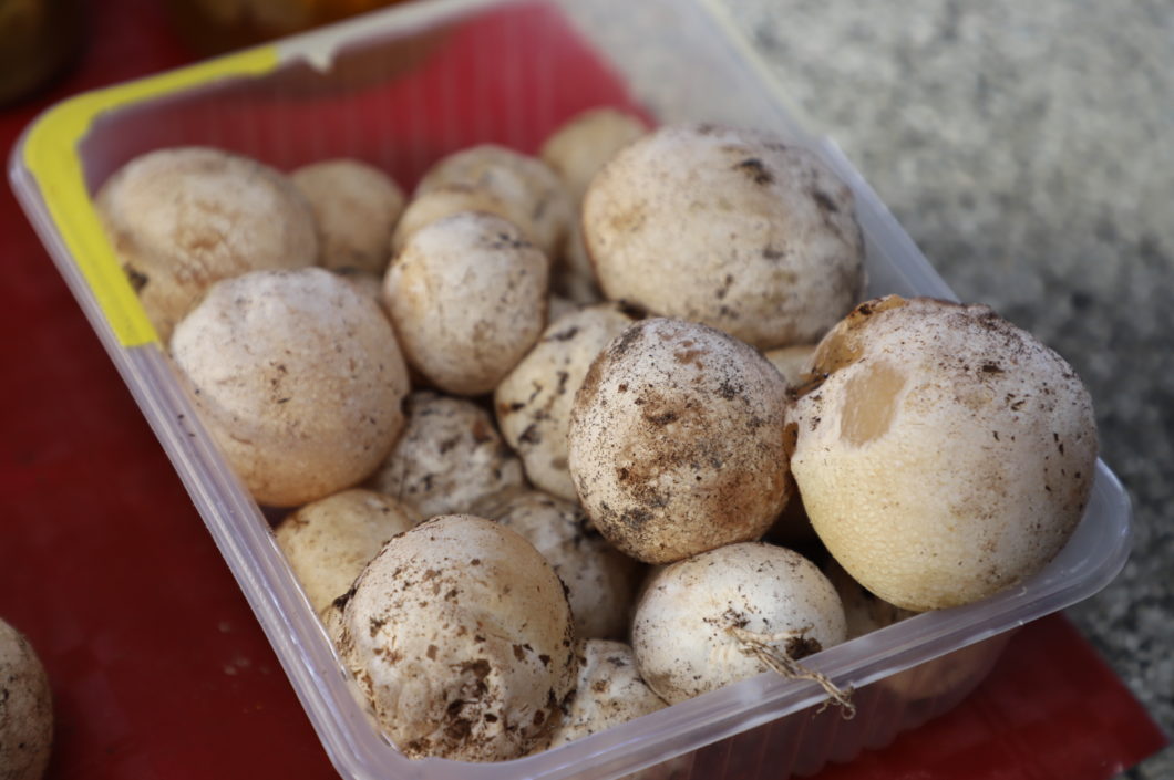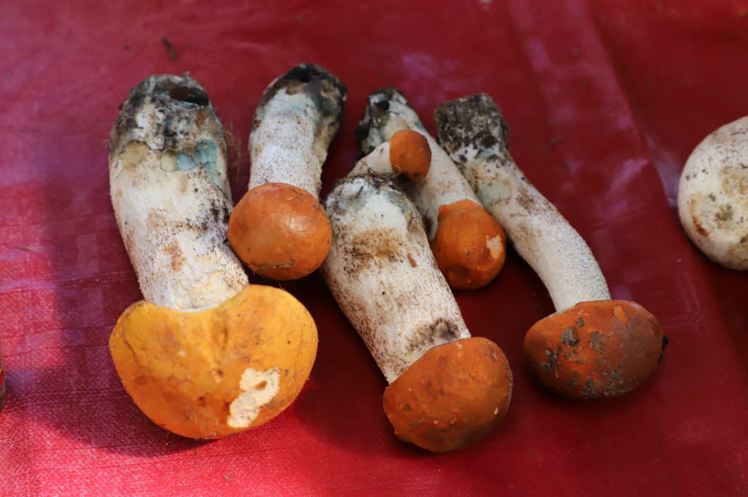 Šalia ant prekystalio pūpso ir į vištos kiaušinius panašūs grybai. Kaip paaiškina V. Šteinas, tai poniabudės, dažnai dar vadinamos žemės taukais. Pasak grybautojo, šie grybai dažniausiai naudojami liaudies medicinoje, bet yra tokių, kurie juos valgo. Skubantiesiems vyras indeliuose jau yra paruošęs užpiltinės – užpilti spiritu ir palaikyti tamsoje grybai, anot pašnekovo, atstoja vaistus nuo skausmo.