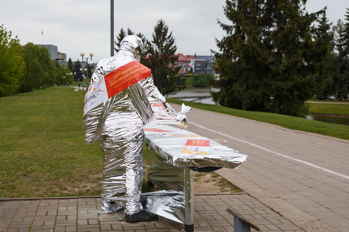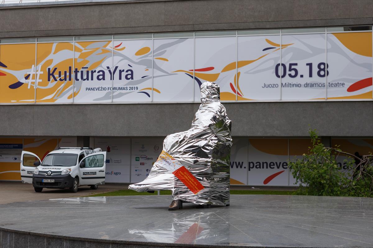 Vakar socialinius tinklus ir naujienų portalus užplūdo susirūpinę panevėžiečiai – įvairiose miesto vietose pernakt pranyko daugiau nei 10 skulptūrų. Miestiečiai puolė dalintis blizgia juosta apsuktų skulptūrų nuotraukomis: per naktį pasislėpė Juozo Balčikonio, Gabrielės Petkevičaitės-Bitės, Don Kichoto, Juozo Miltinio, Šachmatininko ir kitos Panevėžio skulptūros.