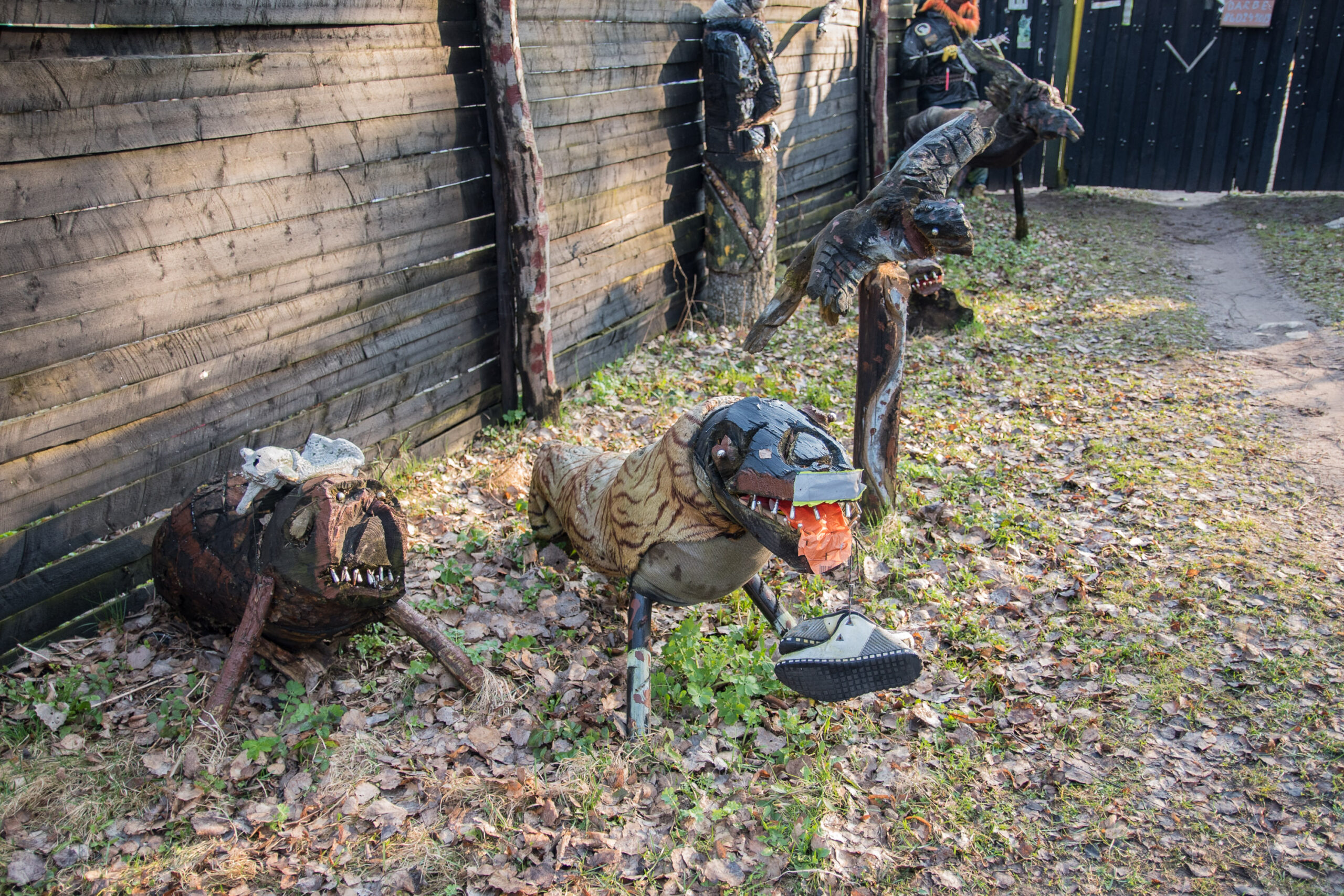 Emocijų užlietas šeimininkas varstė visas savo keisto kiemo pašiūrių, garažų, sandėliukų duris ir bandė įrodyti, kad minėtus statinius saugančios makabriškos skulptūros neslepia jokio šunų žudiko.
