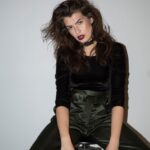 O ir pozuodama modelis tikrai nevilki megztinių aukšta apykakle ir plaukų nepina į dvi kaseles. Fotosesijų pasitaiko ir gana atvirų.