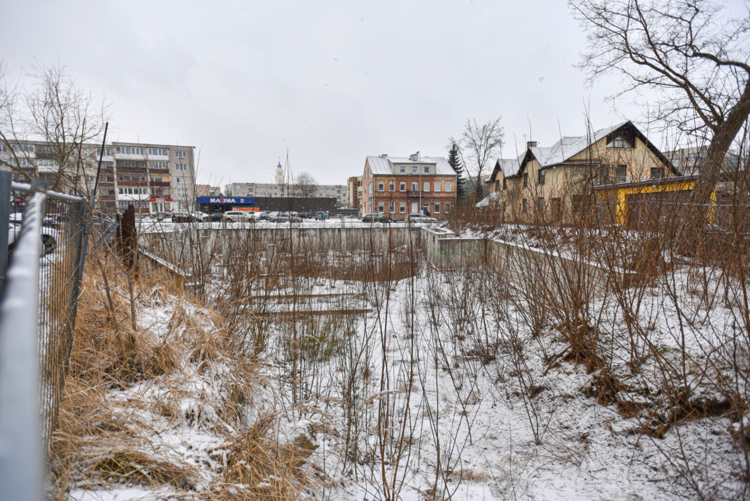Septynaukštis pastatas suprojektuotas, leidimas statyboms gautas, bet jam numatytoje vietoje tebeplyti ir vietinius, ir atvykėlius gąsdinanti laukymė.