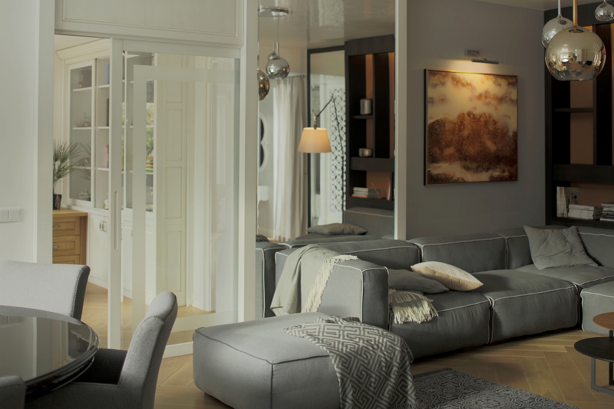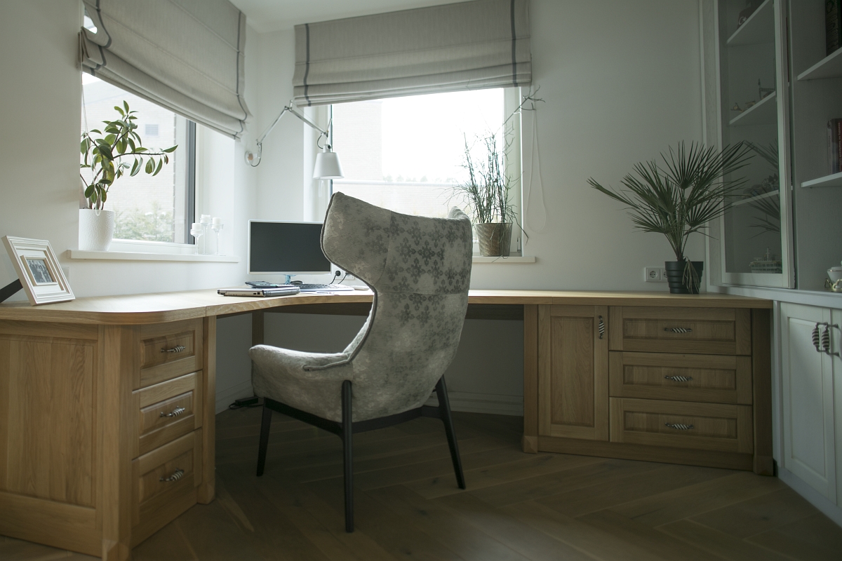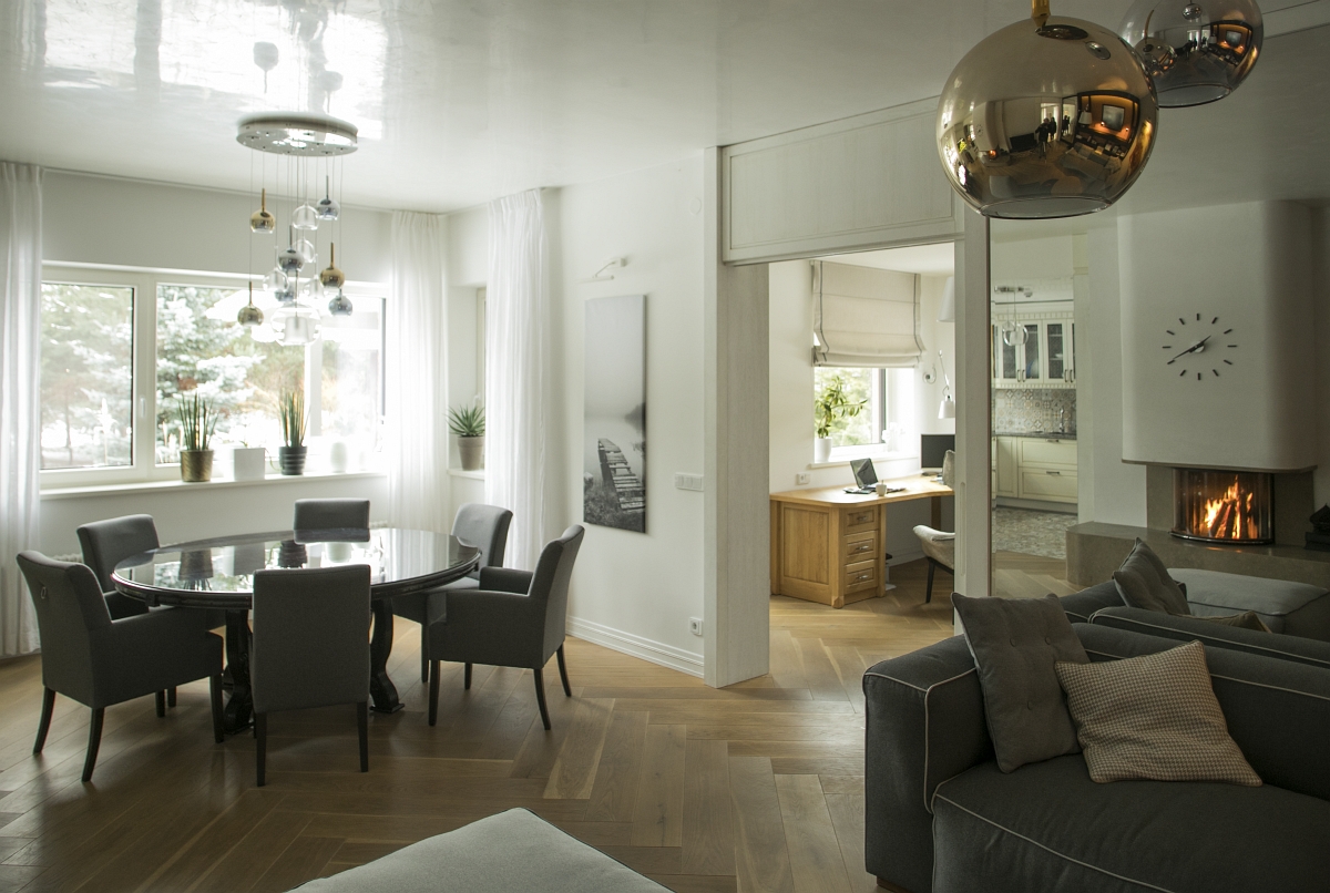 Šio interjero kūrybos gaires įkvėpė pastato architektūra. Architektės ir klientų vizijos sutapo – būste turėjo atsispindėti moderni klasika. Galutinis rezultatas – klasikinis interjero stilius su moderniomis detalėmis, kartu patenkinant praktiškumo poreikį.