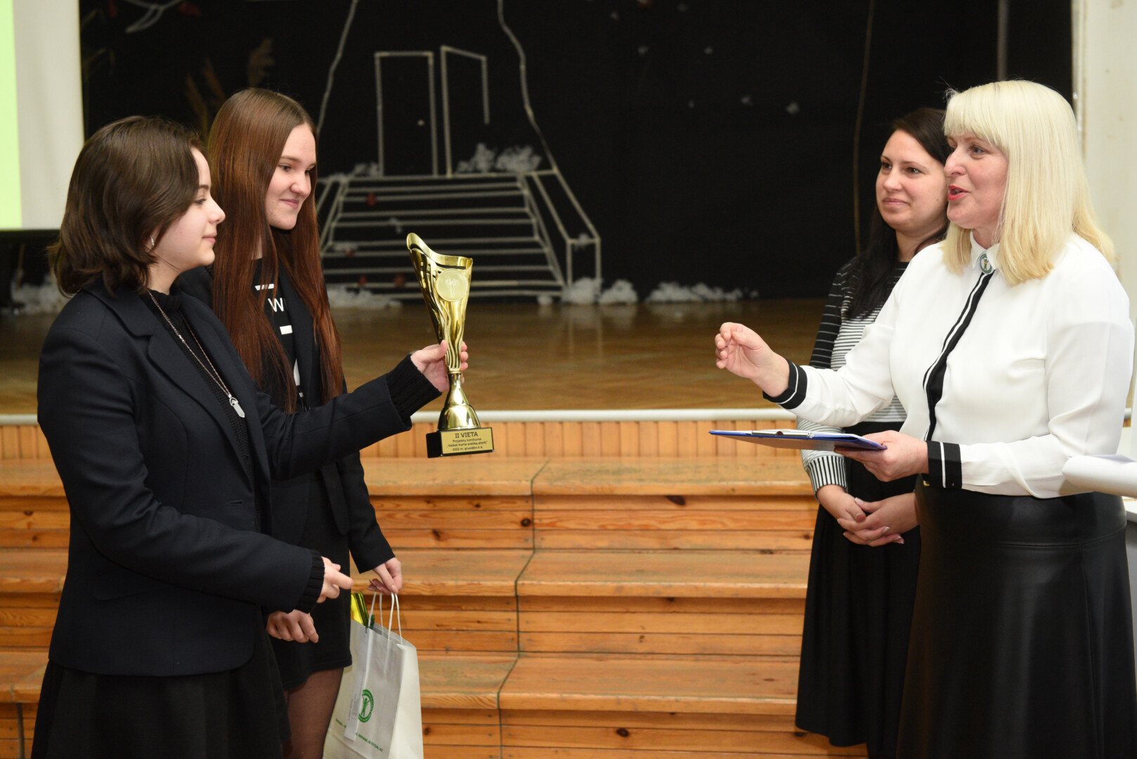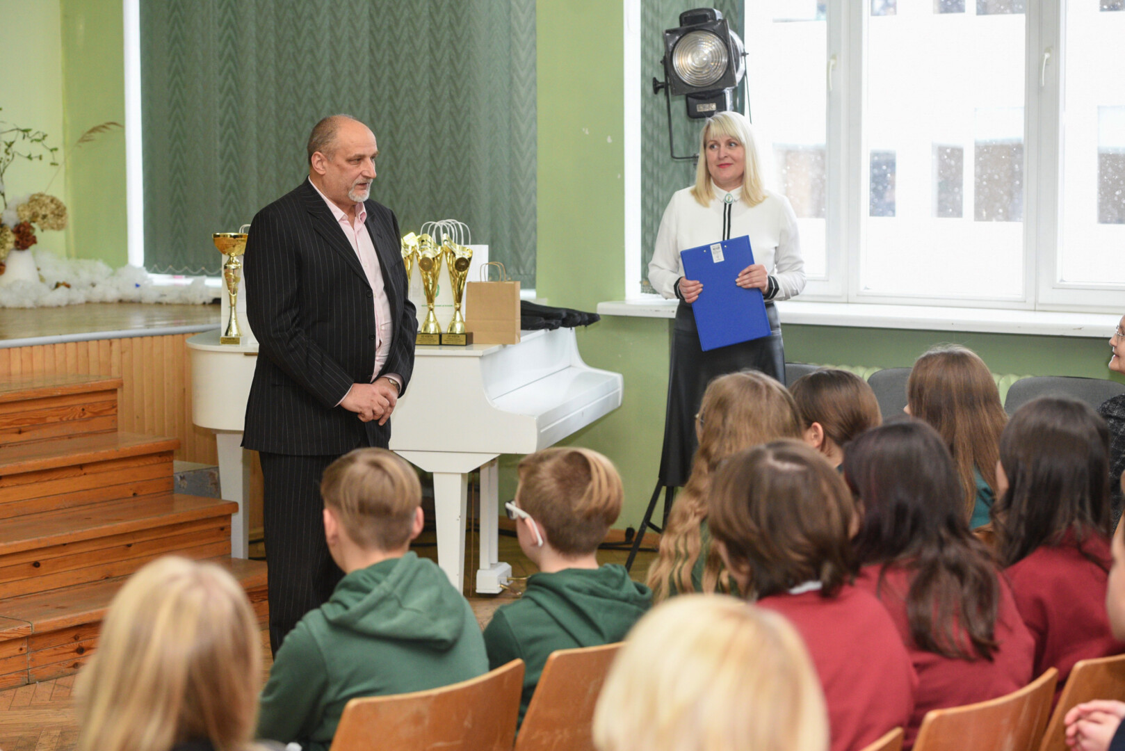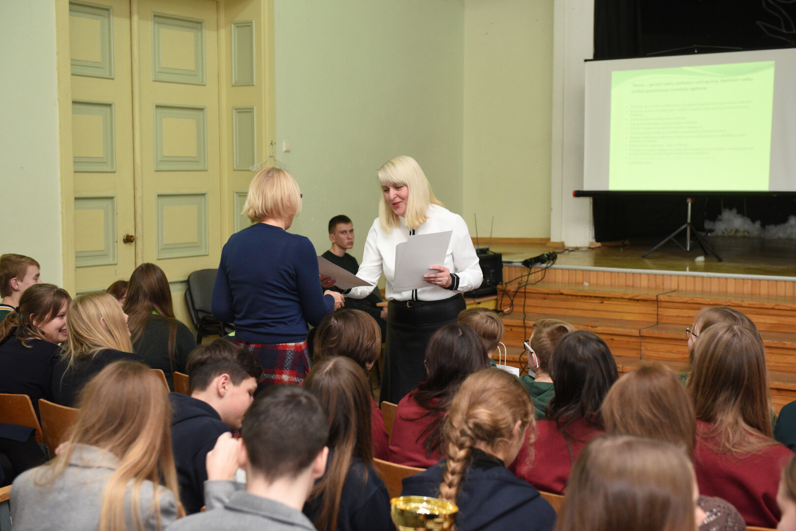 Į V. Žemkalnio gimnazijoje vykusį apdovanojimo vakarą atvykusias komandas pasveikino direktorius Artūras Totilas ir Panevėžio miesto savivaldybės visuomenės sveikatos biuro direktoriaus pavaduotoja Virginija Vaičekonienė.