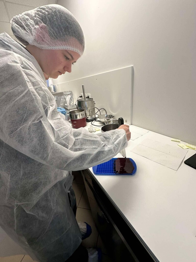 Mokinių komanda ne kartą lankėsi ir gamykloje, kur turėjo galimybę patys gaminti ir išbandyti naujausius skonių derinius.
