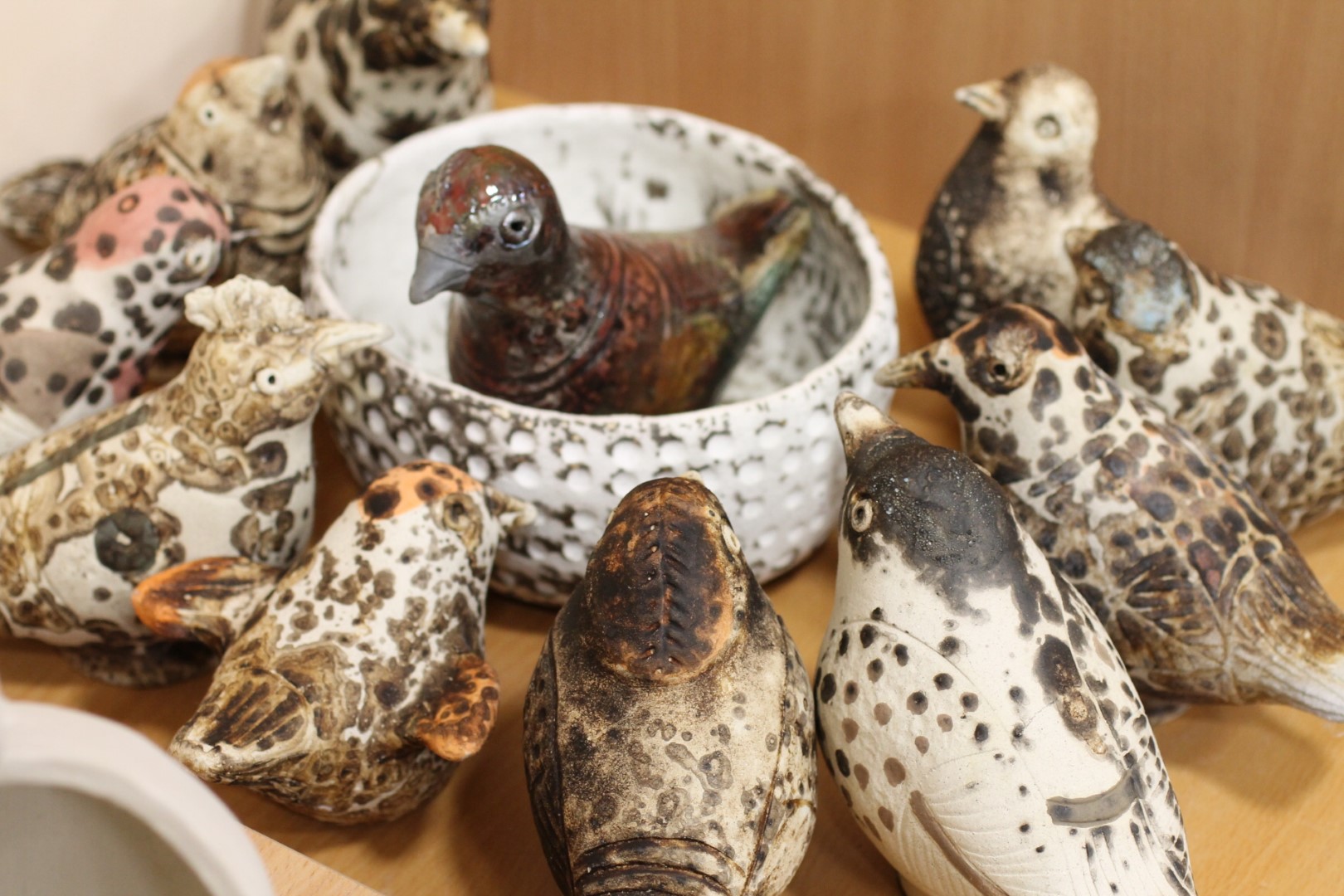 Šimtus kuoduotų, uodeguotų, mažų ir didelių paukščių iš molio nulipdžiusi mokytoja dar ir balsus jiems įdavė – čiulba, ulba, burkuoja dabar jos moliniai sparnuočiai, kaip ir prieš šimtus metų.